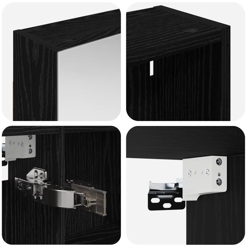 Този модерен банен комплект е олицетворение на стилната изтънченост, съчетавайки атрактивен дизайн с практическа функционалност. Проектиран за съвременния собственик на жилище, той действа както като шкаф за съхранение, така и като стилен акцент, който лесно се вписва в всяка баня. Осигурявайки достатъчно пространство с конфигурацията на стенния си дизайн, той спестява място на пода и позволява лесен достъп до основните неща. Комплектът подобрява атмосферата на банята с двупосочното огледало и LED осветление, създавайки удобна и организирана среда за ежедневните ритуали. Инженерна дървесина: Този шкаф е изработен от инженерна дървесина, позната с отличната си стабилност и издръжливост. Материалът е устойчив на деформация и повреди, осигурявайки дълготрайно парче за ежедневна употреба в банята. Гладкото му покритие придава елегантен вид, който е лесен за поддръжка. Простор за съхранение: Проектиран за максимална полезност, този шкаф предлага голямо пространство с множество рафтове и врати с панти. Добре обмисленото разположение позволява удобно организиране на санитарни принадлежности, осигурявайки всичко на ръка. Икономичният му дизайн повишава функционалността на банята, намалявайки безредиците. Инновативно двупосочно огледало: Тази уникална функция предлага уединение и видимост, а външната страна действа като стандартно огледало, докато вътрешната повърхност позволява дискретно наблюдение. Тази комбинация добавя стил и естетика в съвременните интериори. Ефективно LED осветление: С регулируеми LED ленти, захранвани от USB, шкафът осветява пространството с ярко и енергийно-ефективно осветление, което е особено приятно през нощта. Лесна поддръжка: Поддържането на този шкаф е супер лесно. Препоръчително е да използвате мек плат за почистване, а силните химикали да се избягват, за да се запази целостта на материала.