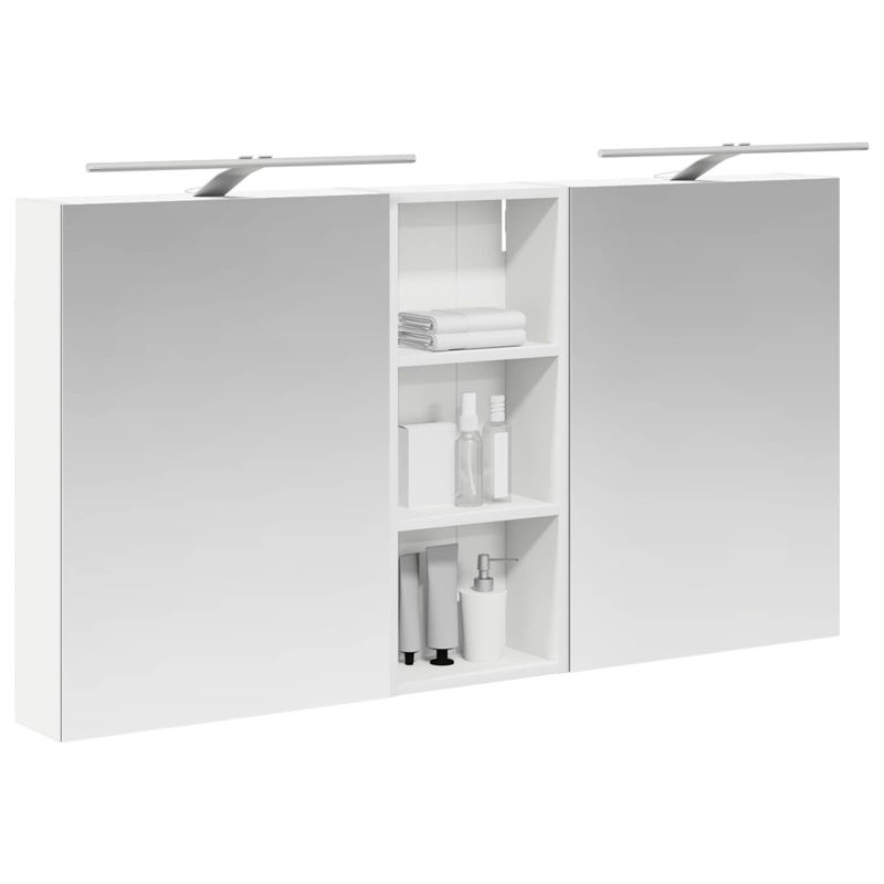 Този модерен банен комплект е олицетворение на стилната изтънченост, съчетавайки атрактивен дизайн с практическа функционалност. Проектиран за съвременния собственик на жилище, той действа както като шкаф за съхранение, така и като стилен акцент, който лесно се вписва в всяка баня. Осигурявайки достатъчно пространство с конфигурацията на стенния си дизайн, той спестява място на пода и позволява лесен достъп до основните неща. Комплектът подобрява атмосферата на банята с двупосочното огледало и LED осветление, създавайки удобна и организирана среда за ежедневните ритуали. Инженерна дървесина: Този шкаф е изработен от инженерна дървесина, позната с отличната си стабилност и издръжливост. Материалът е устойчив на деформация и повреди, осигурявайки дълготрайно парче за ежедневна употреба в банята. Гладкото му покритие придава елегантен вид, който е лесен за поддръжка. Простор за съхранение: Проектиран за максимална полезност, този шкаф предлага голямо пространство с множество рафтове и врати с панти. Добре обмисленото разположение позволява удобно организиране на санитарни принадлежности, осигурявайки всичко на ръка. Икономичният му дизайн повишава функционалността на банята, намалявайки безредиците. Инновативно двупосочно огледало: Тази уникална функция предлага уединение и видимост, а външната страна действа като стандартно огледало, докато вътрешната повърхност позволява дискретно наблюдение. Тази комбинация добавя стил и естетика в съвременните интериори. Ефективно LED осветление: С регулируеми LED ленти, захранвани от USB, шкафът осветява пространството с ярко и енергийно-ефективно осветление, което е особено приятно през нощта. Лесна поддръжка: Поддържането на този шкаф е супер лесно. Препоръчително е да използвате мек плат за почистване, а силните химикали да се избягват, за да се запази целостта на материала. Моля, обърнете внимание, че трябва да използвате само сертифициран вход DC 5V. По-високото напрежение може да доведе до прегряване и да повреди устройството, както и до потенциален риск от прегряване и пожар. Не свързвайте този продукт към захранване, различно от описаното в ръководството, на табелката с името или изрично препоръчано от vidaXL. Този уред не трябва да се използва от деца под 15 години, както и от лица с намалени физически, сетивни или умствени способности или с липса на опит и познания относно използването на електронни уреди. Електричеството е опасно. Повредите и неправилният монтаж, употреба или промяна (подмяна на отделни компоненти) могат да доведат до повреда на уреда , което да доведе до токов удар и опасност за потребителя. Не използвайте този продукт във взривоопасна атмосфера, като например при наличие на запалими течности, газове и прах, или при температура над 50 градуса по Целзий или повече. Не включвайте продукта, ако свързващият кабел или захранването са видимо повредени. Ако външният гъвкав кабел или захранващ кабел на това осветително тяло е повреден, той трябва да бъде заменен изключително от производителя или негов сервизен агент, или от подобно квалифицирано лице, за да се избегне опасност. Изключете захранването по време на монтажа и поддръжката. Уверете се, че крушките са изстинали. Светлинният източник на това осветително тяло не може да се заменя; когато светлинният източник д