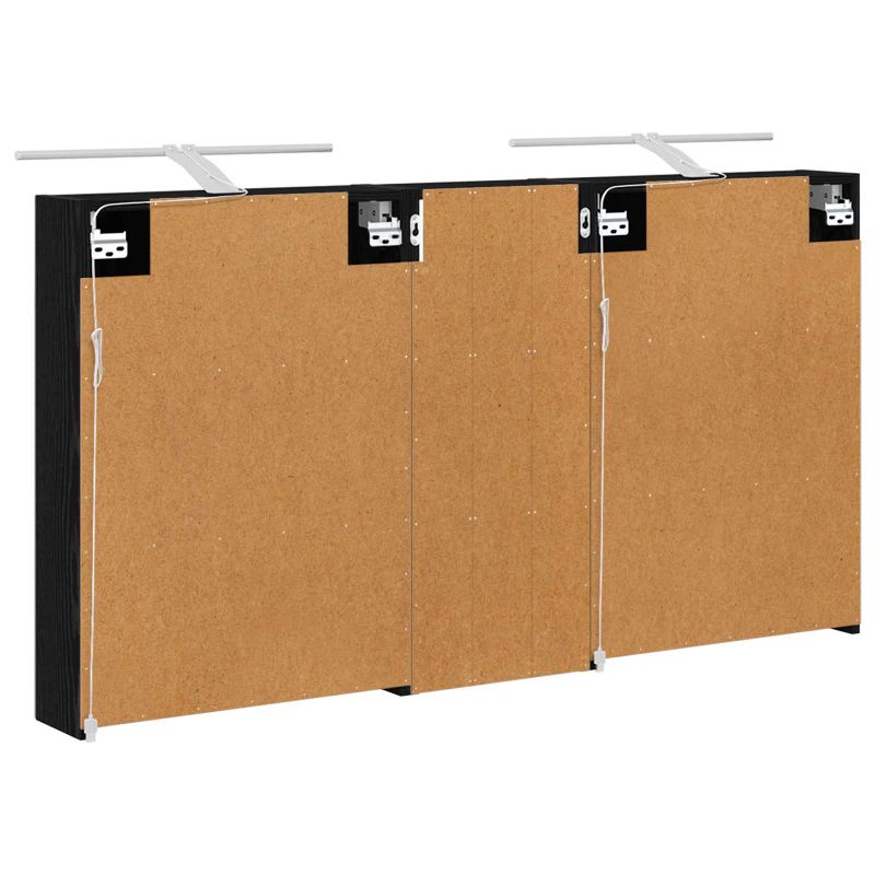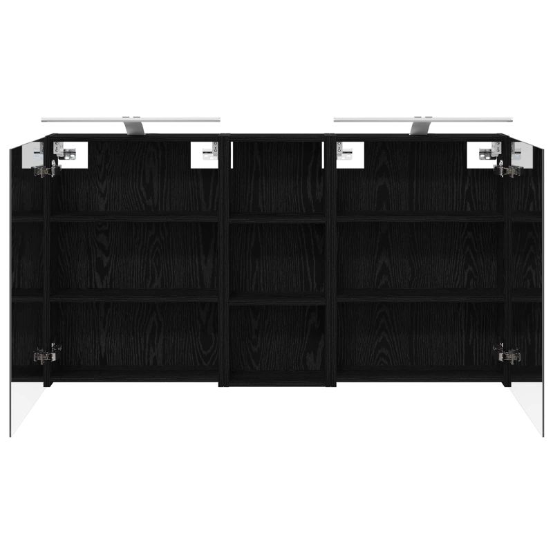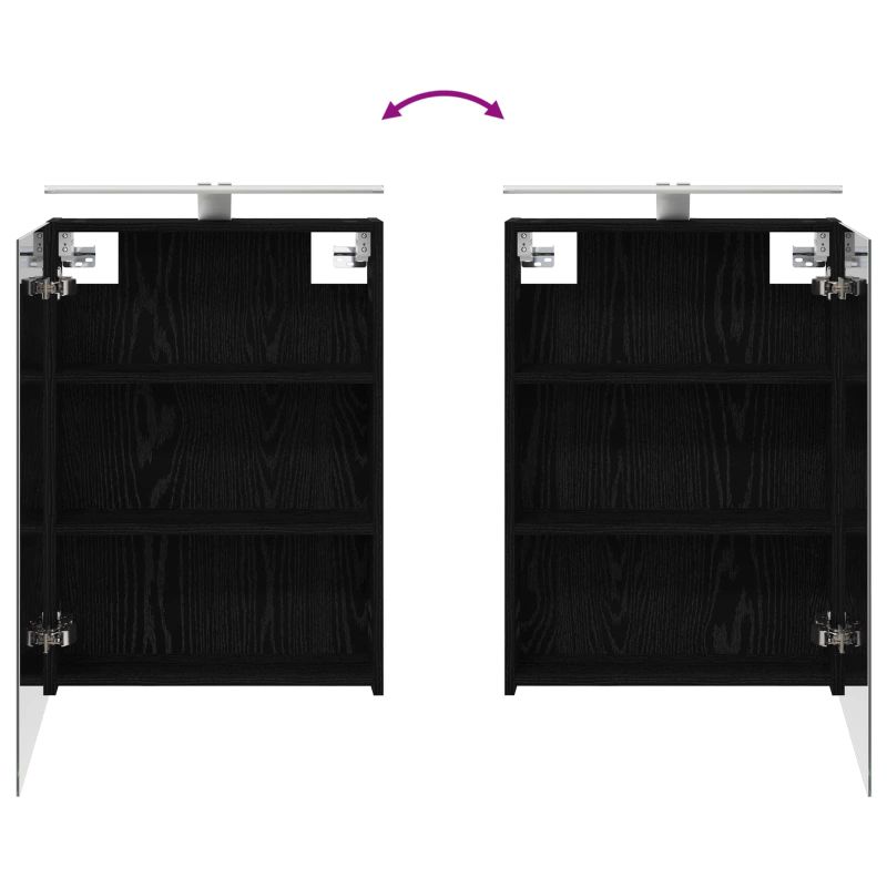 Този модерен банен комплект е олицетворение на стилната изтънченост, съчетавайки атрактивен дизайн с практическа функционалност. Проектиран за съвременния собственик на жилище, той действа както като шкаф за съхранение, така и като стилен акцент, който лесно се вписва в всяка баня. Осигурявайки достатъчно пространство с конфигурацията на стенния си дизайн, той спестява място на пода и позволява лесен достъп до основните неща. Комплектът подобрява атмосферата на банята с двупосочното огледало и LED осветление, създавайки удобна и организирана среда за ежедневните ритуали. Инженерна дървесина: Този шкаф е изработен от инженерна дървесина, позната с отличната си стабилност и издръжливост. Материалът е устойчив на деформация и повреди, осигурявайки дълготрайно парче за ежедневна употреба в банята. Гладкото му покритие придава елегантен вид, който е лесен за поддръжка. Простор за съхранение: Проектиран за максимална полезност, този шкаф предлага голямо пространство с множество рафтове и врати с панти. Добре обмисленото разположение позволява удобно организиране на санитарни принадлежности, осигурявайки всичко на ръка. Икономичният му дизайн повишава функционалността на банята, намалявайки безредиците. Инновативно двупосочно огледало: Тази уникална функция предлага уединение и видимост, а външната страна действа като стандартно огледало, докато вътрешната повърхност позволява дискретно наблюдение. Тази комбинация добавя стил и естетика в съвременните интериори. Ефективно LED осветление: С регулируеми LED ленти, захранвани от USB, шкафът осветява пространството с ярко и енергийно-ефективно осветление, което е особено приятно през нощта. Лесна поддръжка: Поддържането на този шкаф е супер лесно. Препоръчително е да използвате мек плат за почистване, а силните химикали да се избягват, за да се запази целостта на материала. Моля, обърнете внимание, че трябва да използвате само сертифициран вход DC 5V. По-високото напрежение може да доведе до прегряване и да повреди устройството, както и до потенциален риск от прегряване и пожар. Не свързвайте този продукт към захранване, различно от описаното в ръководството, на табелката с името или изрично препоръчано от vidaXL. Този уред не трябва да се използва от деца под 15 години, както и от лица с намалени физически, сетивни или умствени способности или с липса на опит и познания относно използването на електронни уреди. Електричеството е опасно. Повредите и неправилният монтаж, употреба или промяна (подмяна на отделни компоненти) могат да доведат до повреда на уреда , което да доведе до токов удар и опасност за потребителя. Не използвайте този продукт във взривоопасна атмосфера, като например при наличие на запалими течности, газове и прах, или при температура над 50 градуса по Целзий или повече. Не включвайте продукта, ако свързващият кабел или захранването са видимо повредени. Ако външният гъвкав кабел или захранващ кабел на това осветително тяло е повреден, той трябва да бъде заменен изключително от производителя или негов сервизен агент, или от подобно квалифицирано лице, за да се избегне опасност. Изключете захранването по време на монтажа и поддръжката. Уверете се, че крушките са изстинали. Светлинният източник на това осветително тяло не може да се заменя; когато светлинният източник д