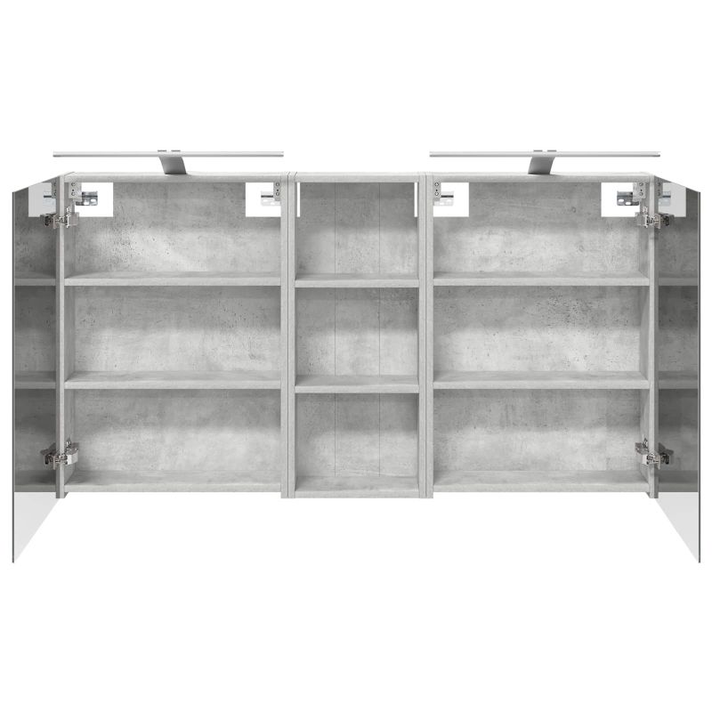 Този модерен банен комплект е олицетворение на стилната изтънченост, съчетавайки атрактивен дизайн с практическа функционалност. Проектиран за съвременния собственик на жилище, той действа както като шкаф за съхранение, така и като стилен акцент, който лесно се вписва в всяка баня. Осигурявайки достатъчно пространство с конфигурацията на стенния си дизайн, той спестява място на пода и позволява лесен достъп до основните неща. Комплектът подобрява атмосферата на банята с двупосочното огледало и LED осветление, създавайки удобна и организирана среда за ежедневните ритуали. Инженерна дървесина: Този шкаф е изработен от инженерна дървесина, позната с отличната си стабилност и издръжливост. Материалът е устойчив на деформация и повреди, осигурявайки дълготрайно парче за ежедневна употреба в банята. Гладкото му покритие придава елегантен вид, който е лесен за поддръжка. Простор за съхранение: Проектиран за максимална полезност, този шкаф предлага голямо пространство с множество рафтове и врати с панти. Добре обмисленото разположение позволява удобно организиране на санитарни принадлежности, осигурявайки всичко на ръка. Икономичният му дизайн повишава функционалността на банята, намалявайки безредиците. Инновативно двупосочно огледало: Тази уникална функция предлага уединение и видимост, а външната страна действа като стандартно огледало, докато вътрешната повърхност позволява дискретно наблюдение. Тази комбинация добавя стил и естетика в съвременните интериори. Ефективно LED осветление: С регулируеми LED ленти, захранвани от USB, шкафът осветява пространството с ярко и енергийно-ефективно осветление, което е особено приятно през нощта. Лесна поддръжка: Поддържането на този шкаф е супер лесно. Препоръчително е да използвате мек плат за почистване, а силните химикали да се избягват, за да се запази целостта на материала. Моля, обърнете внимание, че трябва да използвате само сертифициран вход DC 5V. По-високото напрежение може да доведе до прегряване и да повреди устройството, както и до потенциален риск от прегряване и пожар. Не свързвайте този продукт към захранване, различно от описаното в ръководството, на табелката с името или изрично препоръчано от vidaXL. Този уред не трябва да се използва от деца под 15 години, както и от лица с намалени физически, сетивни или умствени способности или с липса на опит и познания относно използването на електронни уреди. Електричеството е опасно. Повредите и неправилният монтаж, употреба или промяна (подмяна на отделни компоненти) могат да доведат до повреда на уреда , което да доведе до токов удар и опасност за потребителя. Не използвайте този продукт във взривоопасна атмосфера, като например при наличие на запалими течности, газове и прах, или при температура над 50 градуса по Целзий или повече. Не включвайте продукта, ако свързващият кабел или захранването са видимо повредени. Ако външният гъвкав кабел или захранващ кабел на това осветително тяло е повреден, той трябва да бъде заменен изключително от производителя или негов сервизен агент, или от подобно квалифицирано лице, за да се избегне опасност. Изключете захранването по време на монтажа и поддръжката. Уверете се, че крушките са изстинали. Светлинният източник на това осветително тяло не може да се заменя; когато светлинният източник д