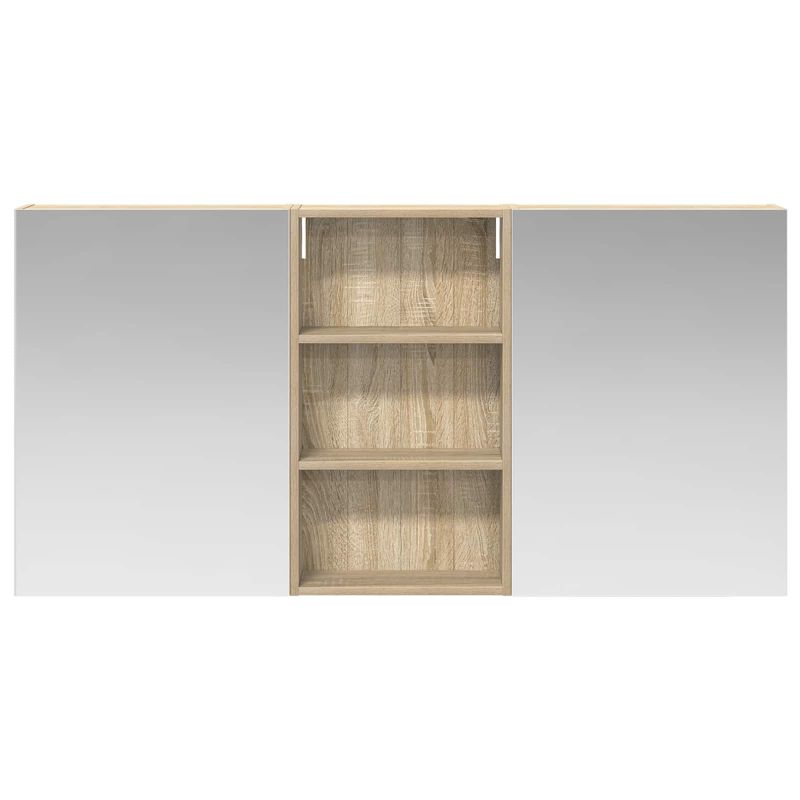 Този модерен банен комплект е олицетворение на стилната изтънченост, съчетавайки атрактивен дизайн с практическа функционалност. Проектиран за съвременния собственик на жилище, той действа както като шкаф за съхранение, така и като стилен акцент, който лесно се вписва в всяка баня. Осигурявайки достатъчно пространство с конфигурацията на стенния си дизайн, той спестява място на пода и позволява лесен достъп до основните неща. Комплектът подобрява атмосферата на банята с двупосочното огледало и LED осветление, създавайки удобна и организирана среда за ежедневните ритуали. Инженерна дървесина: Този шкаф е изработен от инженерна дървесина, позната с отличната си стабилност и издръжливост. Материалът е устойчив на деформация и повреди, осигурявайки дълготрайно парче за ежедневна употреба в банята. Гладкото му покритие придава елегантен вид, който е лесен за поддръжка. Простор за съхранение: Проектиран за максимална полезност, този шкаф предлага голямо пространство с множество рафтове и врати с панти. Добре обмисленото разположение позволява удобно организиране на санитарни принадлежности, осигурявайки всичко на ръка. Икономичният му дизайн повишава функционалността на банята, намалявайки безредиците. Инновативно двупосочно огледало: Тази уникална функция предлага уединение и видимост, а външната страна действа като стандартно огледало, докато вътрешната повърхност позволява дискретно наблюдение. Тази комбинация добавя стил и естетика в съвременните интериори. Ефективно LED осветление: С регулируеми LED ленти, захранвани от USB, шкафът осветява пространството с ярко и енергийно-ефективно осветление, което е особено приятно през нощта. Лесна поддръжка: Поддържането на този шкаф е супер лесно. Препоръчително е да използвате мек плат за почистване, а силните химикали да се избягват, за да се запази целостта на материала.
