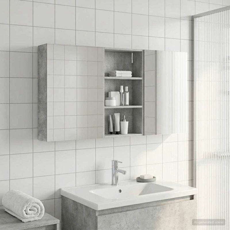 Този модерен банен комплект е олицетворение на стилната изтънченост, съчетавайки атрактивен дизайн с практическа функционалност. Проектиран за съвременния собственик на жилище, той действа както като шкаф за съхранение, така и като стилен акцент, който лесно се вписва в всяка баня. Осигурявайки достатъчно пространство с конфигурацията на стенния си дизайн, той спестява място на пода и позволява лесен достъп до основните неща. Комплектът подобрява атмосферата на банята с двупосочното огледало и LED осветление, създавайки удобна и организирана среда за ежедневните ритуали. Инженерна дървесина: Този шкаф е изработен от инженерна дървесина, позната с отличната си стабилност и издръжливост. Материалът е устойчив на деформация и повреди, осигурявайки дълготрайно парче за ежедневна употреба в банята. Гладкото му покритие придава елегантен вид, който е лесен за поддръжка. Простор за съхранение: Проектиран за максимална полезност, този шкаф предлага голямо пространство с множество рафтове и врати с панти. Добре обмисленото разположение позволява удобно организиране на санитарни принадлежности, осигурявайки всичко на ръка. Икономичният му дизайн повишава функционалността на банята, намалявайки безредиците. Инновативно двупосочно огледало: Тази уникална функция предлага уединение и видимост, а външната страна действа като стандартно огледало, докато вътрешната повърхност позволява дискретно наблюдение. Тази комбинация добавя стил и естетика в съвременните интериори. Ефективно LED осветление: С регулируеми LED ленти, захранвани от USB, шкафът осветява пространството с ярко и енергийно-ефективно осветление, което е особено приятно през нощта. Лесна поддръжка: Поддържането на този шкаф е супер лесно. Препоръчително е да използвате мек плат за почистване, а силните химикали да се избягват, за да се запази целостта на материала.