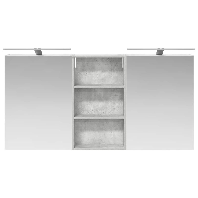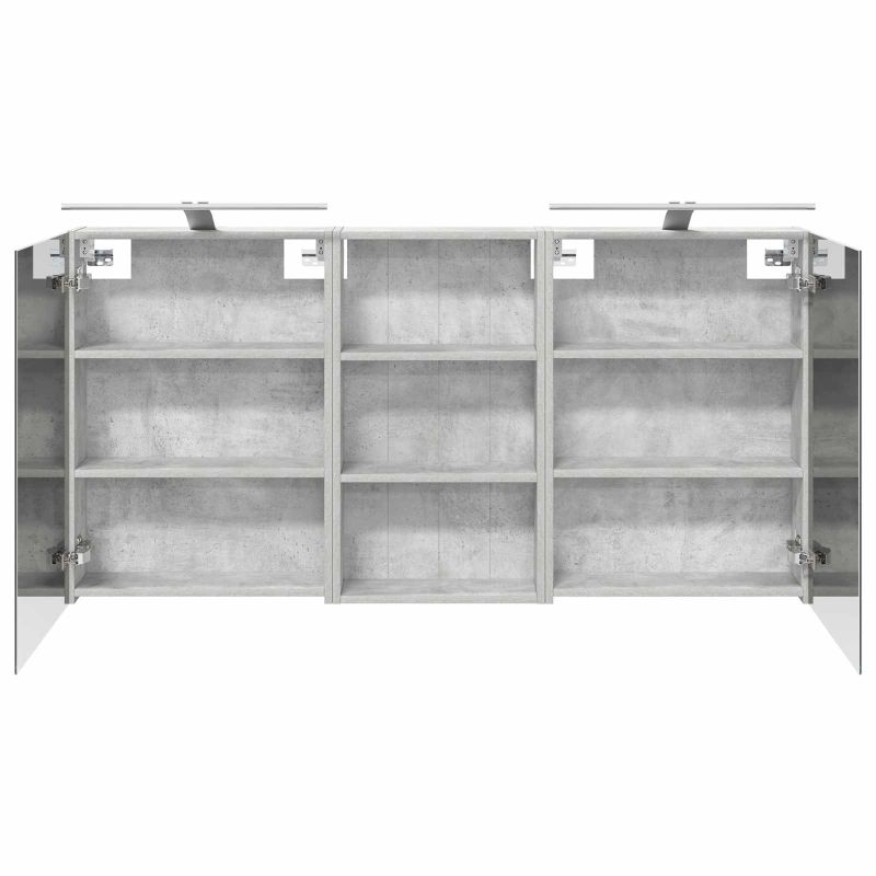 Този модерен банен комплект е олицетворение на стилната изтънченост, съчетавайки атрактивен дизайн с практическа функционалност. Проектиран за съвременния собственик на жилище, той действа както като шкаф за съхранение, така и като стилен акцент, който лесно се вписва в всяка баня. Осигурявайки достатъчно пространство с конфигурацията на стенния си дизайн, той спестява място на пода и позволява лесен достъп до основните неща. Комплектът подобрява атмосферата на банята с двупосочното огледало и LED осветление, създавайки удобна и организирана среда за ежедневните ритуали. Инженерна дървесина: Този шкаф е изработен от инженерна дървесина, позната с отличната си стабилност и издръжливост. Материалът е устойчив на деформация и повреди, осигурявайки дълготрайно парче за ежедневна употреба в банята. Гладкото му покритие придава елегантен вид, който е лесен за поддръжка. Простор за съхранение: Проектиран за максимална полезност, този шкаф предлага голямо пространство с множество рафтове и врати с панти. Добре обмисленото разположение позволява удобно организиране на санитарни принадлежности, осигурявайки всичко на ръка. Икономичният му дизайн повишава функционалността на банята, намалявайки безредиците. Инновативно двупосочно огледало: Тази уникална функция предлага уединение и видимост, а външната страна действа като стандартно огледало, докато вътрешната повърхност позволява дискретно наблюдение. Тази комбинация добавя стил и естетика в съвременните интериори. Ефективно LED осветление: С регулируеми LED ленти, захранвани от USB, шкафът осветява пространството с ярко и енергийно-ефективно осветление, което е особено приятно през нощта. Лесна поддръжка: Поддържането на този шкаф е супер лесно. Препоръчително е да използвате мек плат за почистване, а силните химикали да се избягват, за да се запази целостта на материала. Моля, обърнете внимание, че трябва да използвате само сертифициран вход DC 5V. По-високото напрежение може да доведе до прегряване и да повреди устройството, както и до потенциален риск от прегряване и пожар. Не свързвайте този продукт към захранване, различно от описаното в ръководството, на табелката с името или изрично препоръчано от vidaXL. Този уред не трябва да се използва от деца под 15 години, както и от лица с намалени физически, сетивни или умствени способности или с липса на опит и познания относно използването на електронни уреди. Електричеството е опасно. Повредите и неправилният монтаж, употреба или промяна (подмяна на отделни компоненти) могат да доведат до повреда на уреда , което да доведе до токов удар и опасност за потребителя. Не използвайте този продукт във взривоопасна атмосфера, като например при наличие на запалими течности, газове и прах, или при температура над 50 градуса по Целзий или повече. Не включвайте продукта, ако свързващият кабел или захранването са видимо повредени. Ако външният гъвкав кабел или захранващ кабел на това осветително тяло е повреден, той трябва да бъде заменен изключително от производителя или негов сервизен агент, или от подобно квалифицирано лице, за да се избегне опасност. Изключете захранването по време на монтажа и поддръжката. Уверете се, че крушките са изстинали. Светлинният източник на това осветително тяло не може да се заменя; когато светлинният източник д