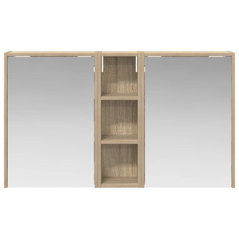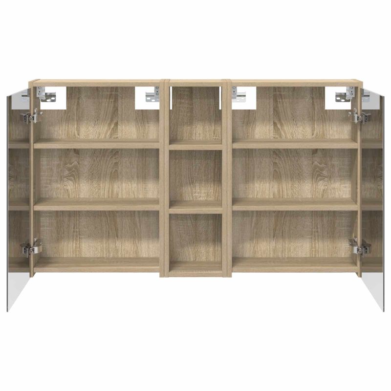Този комплект шкафове за баня предлага стилно и практично решение за съвременни бани. С инженерна дървесина и елегантни линии, шкафът разполага с огледало, което не само увеличава визуално пространството, но и добавя интрига и многофункционалност. Идеален е за собственици на жилища и дизайнери, предоставя ефективно съхраняване и подобрява визията на банята. Минималистичният дизайн и LED осветлението го правят перфектната комбинация от форма и функция. Конструкция от инженерна дървесина: Този шкаф е здрав и издържлив, запазвайки красивия си вид дори при променящи се условия. Материалът е гладък, лесен за почистване и устойчив на износване. Двойно функционални врати: Стъклените врати са елегантни и удобни, разкривайки огромни отделения за съхранение на лични неща и основни принадлежности за банята. Те минимализират безредиците и максимизират организацията. Инновационно осветление: LED лентите осигуряват оптимално осветление за грижа за косата и подобряват атмосферата в банята. Захранвани с USB, те трансформират шкафа в нещо повече от просто място за съхранение. Двупосочно огледало: Уникално проектирано, огледалото добавя дълбочина на шкафа и е идеално за бани, които се нуждаят от частност. Лесен монтаж на стена: Проектирано е за съвременни жилища и може да се монтира на стена, освобождавайки ценна подова площ.