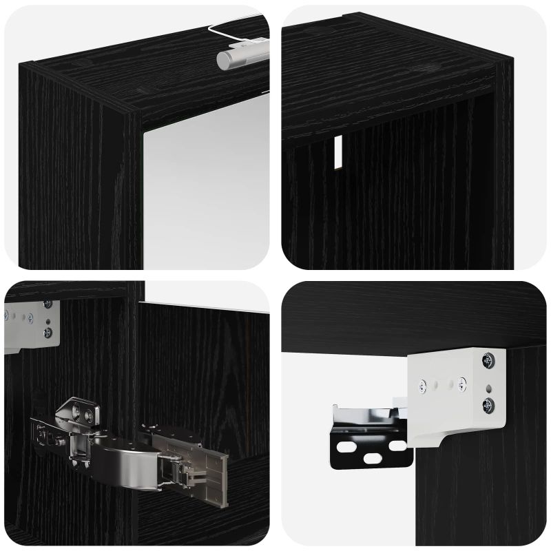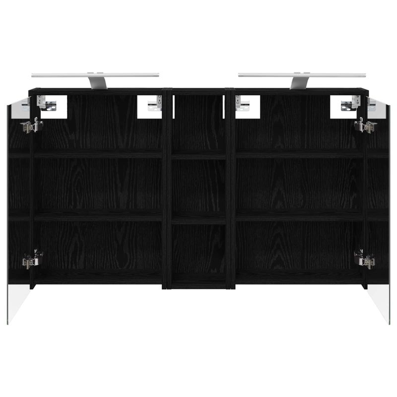 Този комплект шкафове за баня предлага стилно и практично решение за съвременни бани. С инженерна дървесина и елегантни линии, шкафът разполага с огледало, което не само увеличава визуално пространството, но и добавя интрига и многофункционалност. Идеален е за собственици на жилища и дизайнери, предоставя ефективно съхраняване и подобрява визията на банята. Минималистичният дизайн и LED осветлението го правят перфектната комбинация от форма и функция. Конструкция от инженерна дървесина: Този шкаф е здрав и издържлив, запазвайки красивия си вид дори при променящи се условия. Материалът е гладък, лесен за почистване и устойчив на износване. Двойно функционални врати: Стъклените врати са елегантни и удобни, разкривайки огромни отделения за съхранение на лични неща и основни принадлежности за банята. Те минимализират безредиците и максимизират организацията. Инновационно осветление: LED лентите осигуряват оптимално осветление за грижа за косата и подобряват атмосферата в банята. Захранвани с USB, те трансформират шкафа в нещо повече от просто място за съхранение. Двупосочно огледало: Уникално проектирано, огледалото добавя дълбочина на шкафа и е идеално за бани, които се нуждаят от частност. Лесен монтаж на стена: Проектирано е за съвременни жилища и може да се монтира на стена, освобождавайки ценна подова площ. Моля, обърнете внимание, че трябва да използвате само сертифициран вход DC 5V. По-високото напрежение може да доведе до прегряване и да повреди устройството, както и до потенциален риск от прегряване и пожар. Не свързвайте този продукт към захранване, различно от описаното в ръководството, на табелката с името или изрично препоръчано от vidaXL. Този уред не трябва да се използва от деца под 15 години, както и от лица с намалени физически, сетивни или умствени способности или с липса на опит и познания относно използването на електронни уреди. Електричеството е опасно. Повредите и неправилният монтаж, употреба или промяна (подмяна на отделни компоненти) могат да доведат до повреда на уреда , което да доведе до токов удар и опасност за потребителя. Не използвайте този продукт във взривоопасна атмосфера, като например при наличие на запалими течности, газове и прах, или при температура над 50 градуса по Целзий или повече. Не включвайте продукта, ако свързващият кабел или захранването са видимо повредени. Ако външният гъвкав кабел или захранващ кабел на това осветително тяло е повреден, той трябва да бъде заменен изключително от производителя или негов сервизен агент, или от подобно квалифицирано лице, за да се избегне опасност. Изключете захранването по време на монтажа и поддръжката. Уверете се, че крушките са изстинали. Светлинният източник на това осветително тяло не може да се заменя; когато светлинният източник достигне края на експлоатационния си срок, цялото осветително тяло трябва да се замени. Само за употреба на закрито, не използвайте този продукт на открито.