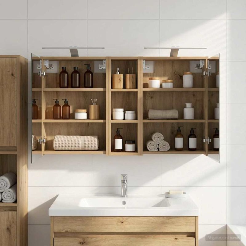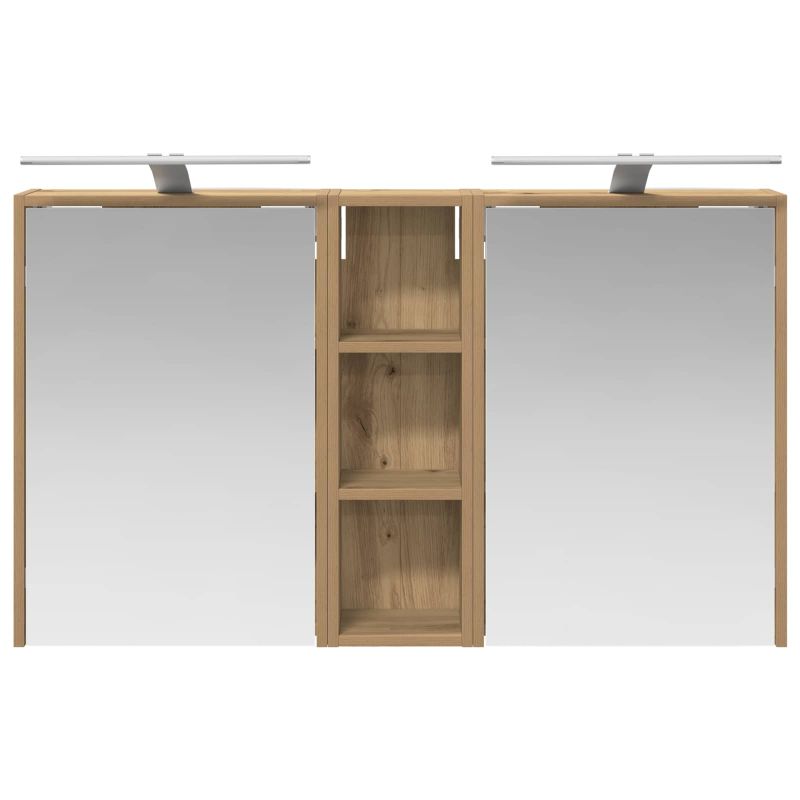 Този комплект шкафове за баня предлага стилно и практично решение за съвременни бани. С инженерна дървесина и елегантни линии, шкафът разполага с огледало, което не само увеличава визуално пространството, но и добавя интрига и многофункционалност. Идеален е за собственици на жилища и дизайнери, предоставя ефективно съхраняване и подобрява визията на банята. Минималистичният дизайн и LED осветлението го правят перфектната комбинация от форма и функция. Конструкция от инженерна дървесина: Този шкаф е здрав и издържлив, запазвайки красивия си вид дори при променящи се условия. Материалът е гладък, лесен за почистване и устойчив на износване. Двойно функционални врати: Стъклените врати са елегантни и удобни, разкривайки огромни отделения за съхранение на лични неща и основни принадлежности за банята. Те минимализират безредиците и максимизират организацията. Инновационно осветление: LED лентите осигуряват оптимално осветление за грижа за косата и подобряват атмосферата в банята. Захранвани с USB, те трансформират шкафа в нещо повече от просто място за съхранение. Двупосочно огледало: Уникално проектирано, огледалото добавя дълбочина на шкафа и е идеално за бани, които се нуждаят от частност. Лесен монтаж на стена: Проектирано е за съвременни жилища и може да се монтира на стена, освобождавайки ценна подова площ. Моля, обърнете внимание, че трябва да използвате само сертифициран вход DC 5V. По-високото напрежение може да доведе до прегряване и да повреди устройството, както и до потенциален риск от прегряване и пожар. Не свързвайте този продукт към захранване, различно от описаното в ръководството, на табелката с името или изрично препоръчано от vidaXL. Този уред не трябва да се използва от деца под 15 години, както и от лица с намалени физически, сетивни или умствени способности или с липса на опит и познания относно използването на електронни уреди. Електричеството е опасно. Повредите и неправилният монтаж, употреба или промяна (подмяна на отделни компоненти) могат да доведат до повреда на уреда , което да доведе до токов удар и опасност за потребителя. Не използвайте този продукт във взривоопасна атмосфера, като например при наличие на запалими течности, газове и прах, или при температура над 50 градуса по Целзий или повече. Не включвайте продукта, ако свързващият кабел или захранването са видимо повредени. Ако външният гъвкав кабел или захранващ кабел на това осветително тяло е повреден, той трябва да бъде заменен изключително от производителя или негов сервизен агент, или от подобно квалифицирано лице, за да се избегне опасност. Изключете захранването по време на монтажа и поддръжката. Уверете се, че крушките са изстинали. Светлинният източник на това осветително тяло не може да се заменя; когато светлинният източник достигне края на експлоатационния си срок, цялото осветително тяло трябва да се замени. Само за употреба на закрито, не използвайте този продукт на открито.