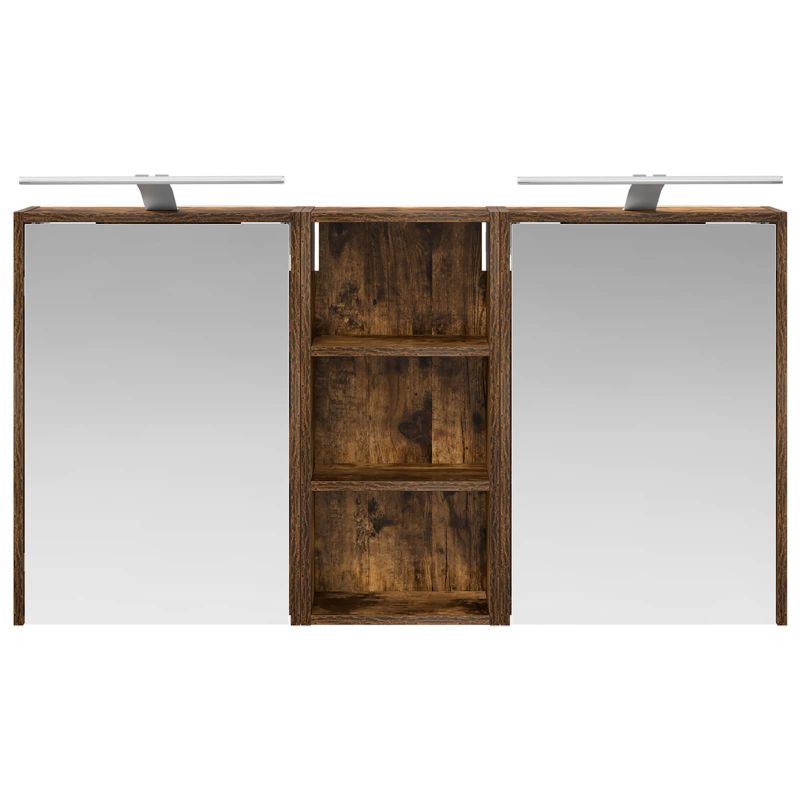Този комплект шкафове за баня предлага стилно и практично решение за съвременни бани. С инженерна дървесина и елегантни линии, шкафът разполага с огледало, което не само увеличава визуално пространството, но и добавя интрига и многофункционалност. Идеален е за собственици на жилища и дизайнери, предоставя ефективно съхраняване и подобрява визията на банята. Минималистичният дизайн и LED осветлението го правят перфектната комбинация от форма и функция. Конструкция от инженерна дървесина: Този шкаф е здрав и издържлив, запазвайки красивия си вид дори при променящи се условия. Материалът е гладък, лесен за почистване и устойчив на износване. Двойно функционални врати: Стъклените врати са елегантни и удобни, разкривайки огромни отделения за съхранение на лични неща и основни принадлежности за банята. Те минимализират безредиците и максимизират организацията. Инновационно осветление: LED лентите осигуряват оптимално осветление за грижа за косата и подобряват атмосферата в банята. Захранвани с USB, те трансформират шкафа в нещо повече от просто място за съхранение. Двупосочно огледало: Уникално проектирано, огледалото добавя дълбочина на шкафа и е идеално за бани, които се нуждаят от частност. Лесен монтаж на стена: Проектирано е за съвременни жилища и може да се монтира на стена, освобождавайки ценна подова площ. Моля, обърнете внимание, че трябва да използвате само сертифициран вход DC 5V. По-високото напрежение може да доведе до прегряване и да повреди устройството, както и до потенциален риск от прегряване и пожар. Не свързвайте този продукт към захранване, различно от описаното в ръководството, на табелката с името или изрично препоръчано от vidaXL. Този уред не трябва да се използва от деца под 15 години, както и от лица с намалени физически, сетивни или умствени способности или с липса на опит и познания относно използването на електронни уреди. Електричеството е опасно. Повредите и неправилният монтаж, употреба или промяна (подмяна на отделни компоненти) могат да доведат до повреда на уреда , което да доведе до токов удар и опасност за потребителя. Не използвайте този продукт във взривоопасна атмосфера, като например при наличие на запалими течности, газове и прах, или при температура над 50 градуса по Целзий или повече. Не включвайте продукта, ако свързващият кабел или захранването са видимо повредени. Ако външният гъвкав кабел или захранващ кабел на това осветително тяло е повреден, той трябва да бъде заменен изключително от производителя или негов сервизен агент, или от подобно квалифицирано лице, за да се избегне опасност. Изключете захранването по време на монтажа и поддръжката. Уверете се, че крушките са изстинали. Светлинният източник на това осветително тяло не може да се заменя; когато светлинният източник достигне края на експлоатационния си срок, цялото осветително тяло трябва да се замени. Само за употреба на закрито, не използвайте този продукт на открито.