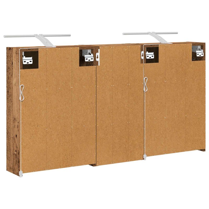 Този комплект шкафове за баня предлага стилно и практично решение за съвременни бани. С инженерна дървесина и елегантни линии, шкафът разполага с огледало, което не само увеличава визуално пространството, но и добавя интрига и многофункционалност. Идеален е за собственици на жилища и дизайнери, предоставя ефективно съхраняване и подобрява визията на банята. Минималистичният дизайн и LED осветлението го правят перфектната комбинация от форма и функция. Конструкция от инженерна дървесина: Този шкаф е здрав и издържлив, запазвайки красивия си вид дори при променящи се условия. Материалът е гладък, лесен за почистване и устойчив на износване. Двойно функционални врати: Стъклените врати са елегантни и удобни, разкривайки огромни отделения за съхранение на лични неща и основни принадлежности за банята. Те минимализират безредиците и максимизират организацията. Инновационно осветление: LED лентите осигуряват оптимално осветление за грижа за косата и подобряват атмосферата в банята. Захранвани с USB, те трансформират шкафа в нещо повече от просто място за съхранение. Двупосочно огледало: Уникално проектирано, огледалото добавя дълбочина на шкафа и е идеално за бани, които се нуждаят от частност. Лесен монтаж на стена: Проектирано е за съвременни жилища и може да се монтира на стена, освобождавайки ценна подова площ. Моля, обърнете внимание, че трябва да използвате само сертифициран вход DC 5V. По-високото напрежение може да доведе до прегряване и да повреди устройството, както и до потенциален риск от прегряване и пожар. Не свързвайте този продукт към захранване, различно от описаното в ръководството, на табелката с името или изрично препоръчано от vidaXL. Този уред не трябва да се използва от деца под 15 години, както и от лица с намалени физически, сетивни или умствени способности или с липса на опит и познания относно използването на електронни уреди. Електричеството е опасно. Повредите и неправилният монтаж, употреба или промяна (подмяна на отделни компоненти) могат да доведат до повреда на уреда , което да доведе до токов удар и опасност за потребителя. Не използвайте този продукт във взривоопасна атмосфера, като например при наличие на запалими течности, газове и прах, или при температура над 50 градуса по Целзий или повече. Не включвайте продукта, ако свързващият кабел или захранването са видимо повредени. Ако външният гъвкав кабел или захранващ кабел на това осветително тяло е повреден, той трябва да бъде заменен изключително от производителя или негов сервизен агент, или от подобно квалифицирано лице, за да се избегне опасност. Изключете захранването по време на монтажа и поддръжката. Уверете се, че крушките са изстинали. Светлинният източник на това осветително тяло не може да се заменя; когато светлинният източник достигне края на експлоатационния си срок, цялото осветително тяло трябва да се замени. Само за употреба на закрито, не използвайте този продукт на открито.