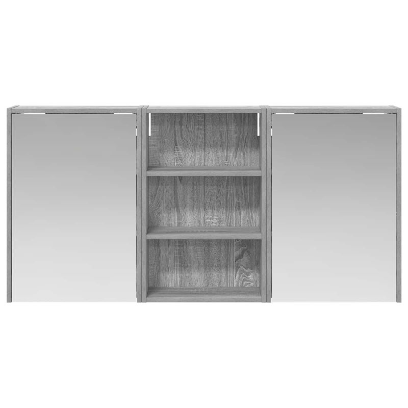 Този комплект шкафове за баня предлага стилно и практично решение за съвременни бани. С инженерна дървесина и елегантни линии, шкафът разполага с огледало, което не само увеличава визуално пространството, но и добавя интрига и многофункционалност. Идеален е за собственици на жилища и дизайнери, предоставя ефективно съхраняване и подобрява визията на банята. Минималистичният дизайн и LED осветлението го правят перфектната комбинация от форма и функция. Конструкция от инженерна дървесина: Този шкаф е здрав и издържлив, запазвайки красивия си вид дори при променящи се условия. Материалът е гладък, лесен за почистване и устойчив на износване. Двойно функционални врати: Стъклените врати са елегантни и удобни, разкривайки огромни отделения за съхранение на лични неща и основни принадлежности за банята. Те минимализират безредиците и максимизират организацията. Инновационно осветление: LED лентите осигуряват оптимално осветление за грижа за косата и подобряват атмосферата в банята. Захранвани с USB, те трансформират шкафа в нещо повече от просто място за съхранение. Двупосочно огледало: Уникално проектирано, огледалото добавя дълбочина на шкафа и е идеално за бани, които се нуждаят от частност. Лесен монтаж на стена: Проектирано е за съвременни жилища и може да се монтира на стена, освобождавайки ценна подова площ.
