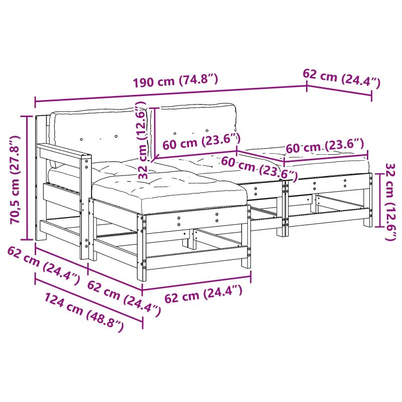 Този модулен комплект за градински мебели е страхотна комбинация от съвременна елегантност и практичност, идеален за външна употреба. С гладките си текстури и изчистени линии придава стил на всяка градина или тераса. Комплектът включва ъглов диван, среден диван, подлакътници и възглавници, осигурявайки различни опции за сядане, подходящи за социални събирания или релаксация. Независимо дали планувате парти на открито или се отпускате с книга, този комплект предлага комфорт и гъвкавост. Солидна борова конструкция: Построен с устойчива борова дървесина, този комплект мебели осигурява дълготрайност и стабилност. Дървесината носи топла и приветлива атмосфера, обогатявайки всяко открито пространство. Борът е устойчив на лоши условия, което го прави надежден за градински мебели. Възглавници за комфорт: Изработени с полипропиленови възглавници, всяка седалка има допълнителен комфорт за дълго сядане. Лекотата и влагозащитните им свойства улесняват поддържането им и осигуряват дълготрайна мекота. Гъвкаво разположение: С ъглов диван, среден диван и подлакътници, модулният дизайн дава на потребителите възможност да пренаредят или разширят седалките, за да отговорят на всяка ситуация. Тази гъвкавост го прави идеален както за интимни срещи, така и за по-големи събития. Функции, устойчиви на време: Създаден за удовлетворение на открито, комплектът включва устойчиви на времето елементи, които предпазват от слънце и дъжд. Използвайте водоустойчиви средства, за да запазите дълговечността и привлекателността на всяка част. Лесна поддръжка: Повърхностите на комплекта са гладки и лесни за поддържане. Просто следвайте инструкциите за грижа, ползвайте покритие при лошо време и избягвайте пряка слънчева светлина. Това гарантира, че комплектът остава атрактивен през всеки сезон.