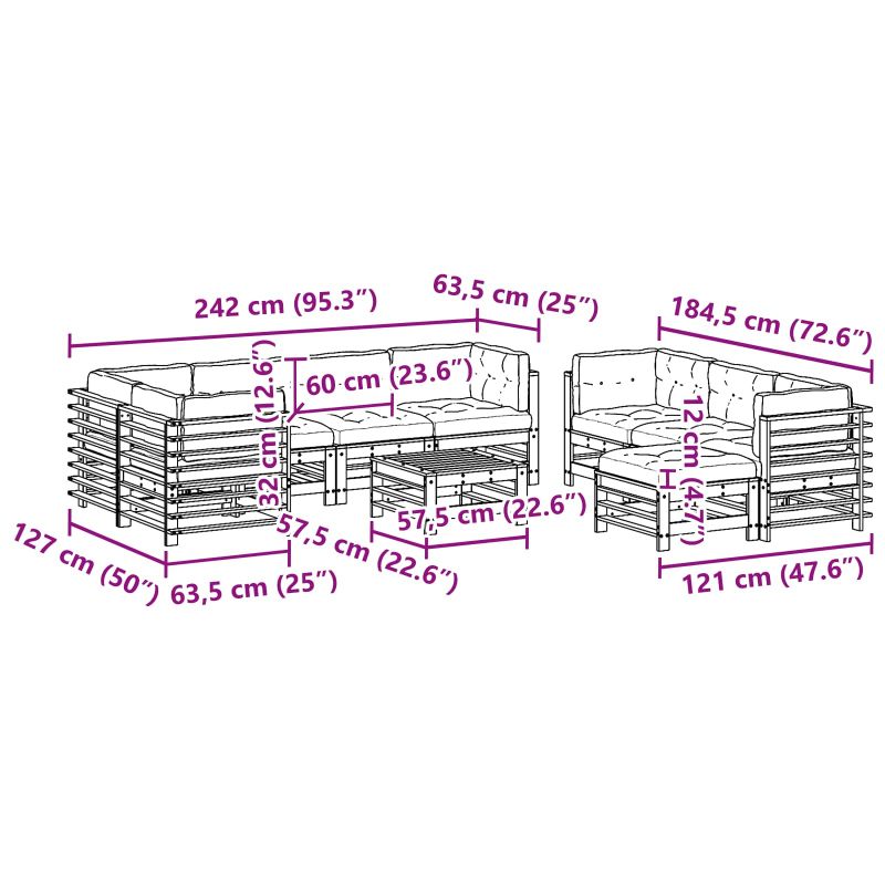 • 3 бр. Среден диван: 57,5 x 63,5 x 60 см (Д x Ш x В)