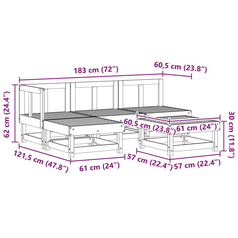Този модуларен градински диван е за съвременните хора, които обичат да са навън, комбинира стил с функционалност. Погледни как просторното място те кани да се отпуснеш, дали с другари или за собствена почивка, защото има правоъгълна форма, която изглежда супер стилно. Стилните му линии и натуралните нюанси освежават всяка тераса и градина. Идеален е за собственици и дизайнери, които искат решения за хубави преживявания. С модния си шик лесно се вмества в всевъзможни декори и подчертава изисканост. Рамка от масивна борова дървесина: Произведен от здрав бор, той е здрав като камък. Дървото е избрано внимателно, за да устои на всякакви условия. Гладкото му покритие му придава стил и добавя естествено усещане към градината или терасата. Идеален за тези, които търсят дълготрайни мебели с модерен дух. Компоненти, подходящи за открито: Правен е специално за външно ползване, така че да е устойчив на метеорологични условия. Устойчив е на UV лъчи и е създаден да запази здравия си вид. Всеки елемент е направен, за да не се скапва от слънцето и запазва цвета си. Гъвкави Seating разположения: Идеален за всякакви обстановки, модулната конструкция позволява да отговориш на нуждите от сядане. Без значение дали прекарваш време с гости или си сам, лесно можеш да променяш местата, за да паснат на пространството. Гъвкавостта и голямата площ за сядане го правят идеален за партита или спокоен вечер под звездите. Съвременна визия: С актуален дизайн, модулният комплект предлага свежи, модни линии, които обогатяват всяка градина, добавяйки шик. Ненатрапчивият му стил се съчетава с всякакви теми на декора и допълва личната стилистика. Лесна поддръжка: С основни грижи, този комплект е лесен за поддръжка. Пази го от продължителна слънчева светлина и слагай покривало, когато не го ползваш, за да си сигурен, че ще си запази визията. Възглавниците е най-добре да се приберат вътре при лошо време, за да им удължиш живота. Основните грижници му помагат да остане красив и свеж през цялата година, давайки ти удоволствие с минимални усилия.