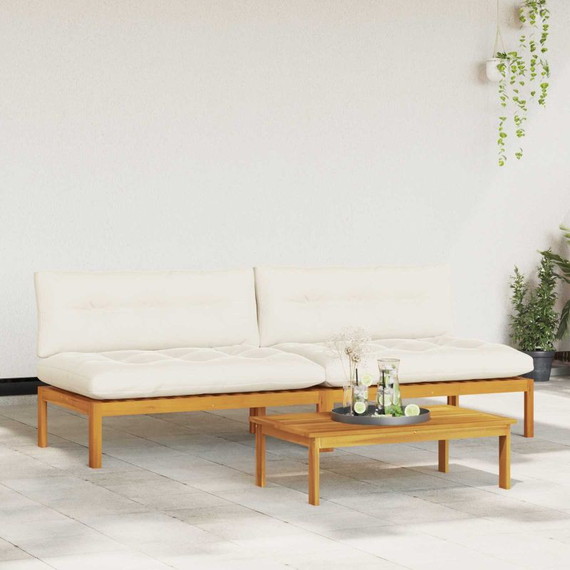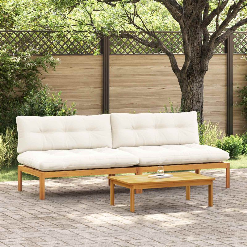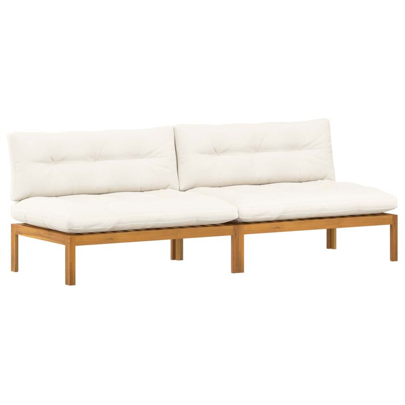 Среден диван 2 Брой Естествено и кремаво бяло Акациево дърво