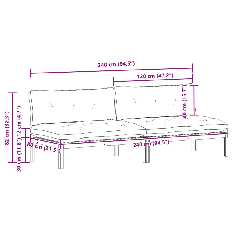 Среден диван Светла акация и кремаво бяло 240 x 80 x 82 см