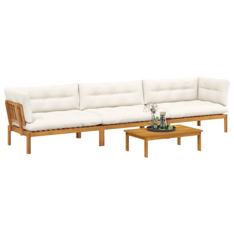 4 Брой Градински палетен диван единици Солидно акациево дърво