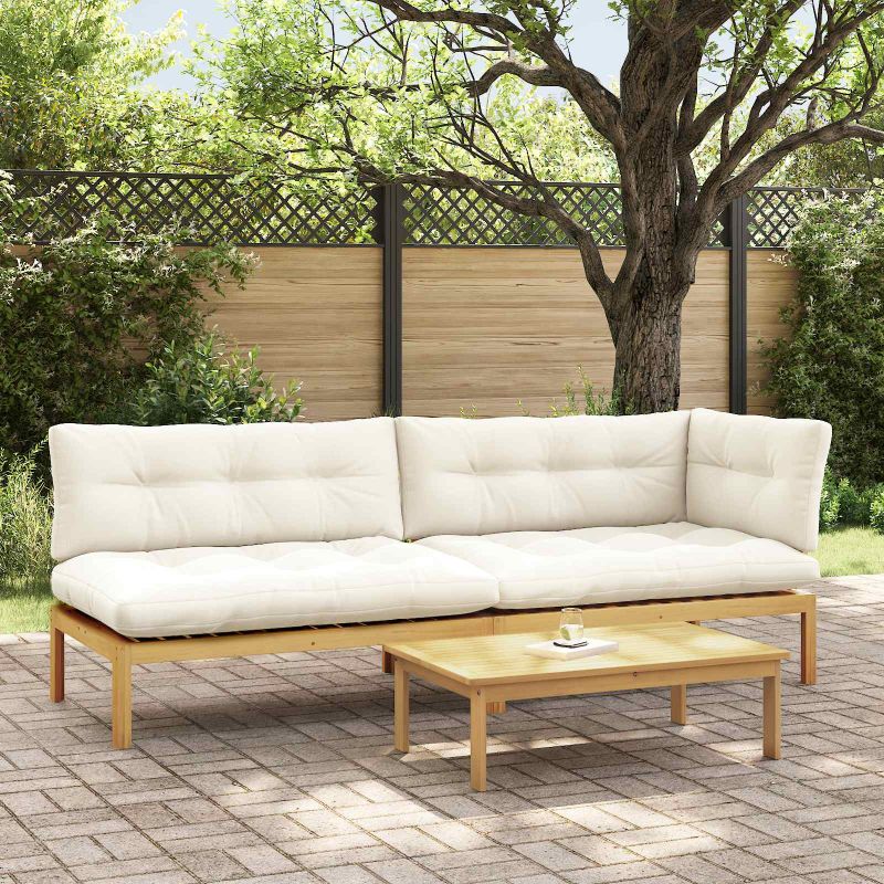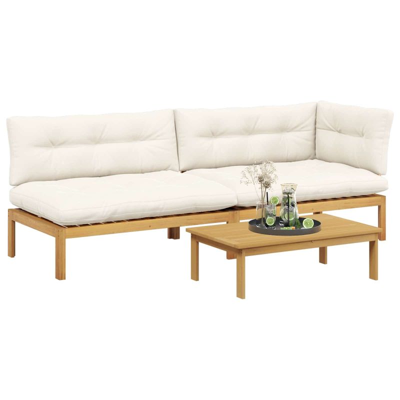3 Брой Градински палетен диван единици Солидно акациево дърво