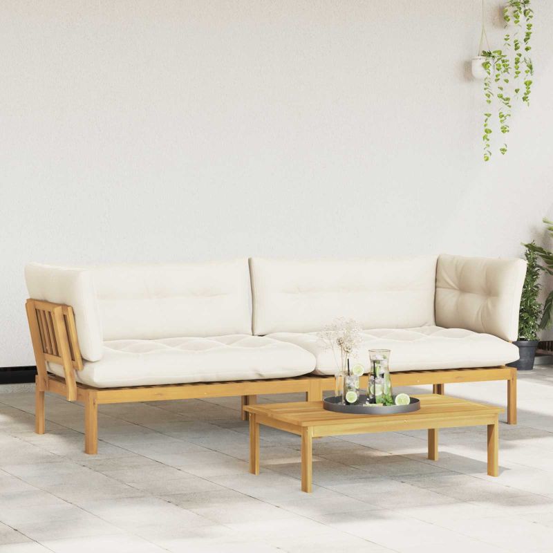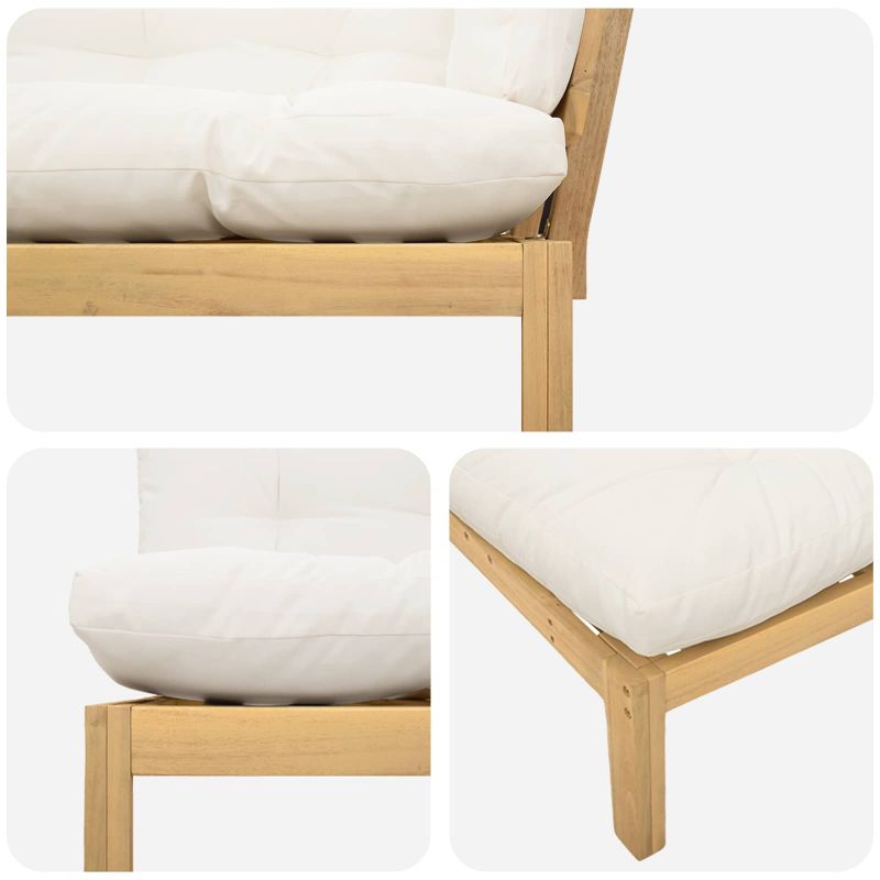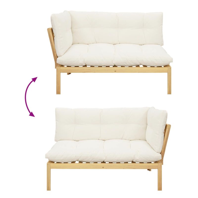 Този комплект градински диван с рустикален стил е идеален за комфортно сядане на открито. Изработен е от стабилна акациева дървесина, а рамката е в топли тонове и красиви шарки, които се вписват чудесно в градинската или терасната обстановка. Конфигурацията с ъгъл ви позволява да създадете уютно пространство, а съвпадащата маса е перфектна за напитки или малки неща. Възглавниците с плоска подложка и леко наклонен гръб ще ви осигурят опора за почивка на открито. Изработен от акациево дърво Рамката, гърба, краката и седалките са от здрава акациева дървесина, която е устойчива на атмосферни влияния и има чудесна текстура. Тя придава натурален вид и осигурява стабилност за градинския диван. Фиксирана рамка с ламели С твърда рамка от ламели, диванът предлага стабилна и удобна опора. Този дизайн е направен за честа употреба на открито. Водоотблъскващи свойства Създаден за външни условия, този диван помага да запази вида и структурата си при дъжд или слънце, гарантирайки дългаторенна употреба. Ъглова конфигурация и маса Проектиран в ъглова форма, този модел максимално използва простора и предлага уютна дневна зона. Включената маса е идеална за напитки или закуски. Лесна поддръжка Просто изтрийте дивана с влажна кърпа, за да се запази добрият му вид. Минималните нужди от поддръжка го правят удобен за използване на открито.