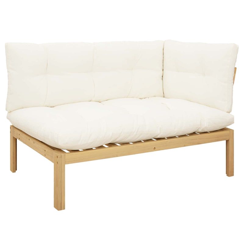 Този комплект градински диван с рустикален стил е идеален за комфортно сядане на открито. Изработен е от стабилна акациева дървесина, а рамката е в топли тонове и красиви шарки, които се вписват чудесно в градинската или терасната обстановка. Конфигурацията с ъгъл ви позволява да създадете уютно пространство, а съвпадащата маса е перфектна за напитки или малки неща. Възглавниците с плоска подложка и леко наклонен гръб ще ви осигурят опора за почивка на открито. Изработен от акациево дърво Рамката, гърба, краката и седалките са от здрава акациева дървесина, която е устойчива на атмосферни влияния и има чудесна текстура. Тя придава натурален вид и осигурява стабилност за градинския диван. Фиксирана рамка с ламели С твърда рамка от ламели, диванът предлага стабилна и удобна опора. Този дизайн е направен за честа употреба на открито. Водоотблъскващи свойства Създаден за външни условия, този диван помага да запази вида и структурата си при дъжд или слънце, гарантирайки дългаторенна употреба. Ъглова конфигурация и маса Проектиран в ъглова форма, този модел максимално използва простора и предлага уютна дневна зона. Включената маса е идеална за напитки или закуски. Лесна поддръжка Просто изтрийте дивана с влажна кърпа, за да се запази добрият му вид. Минималните нужди от поддръжка го правят удобен за използване на открито. Максимално 110 кг на седалка.