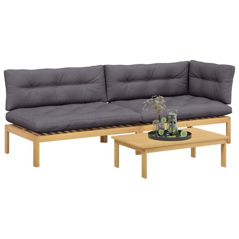 3 Брой Градински палетен диван единици Солидно акациево дърво