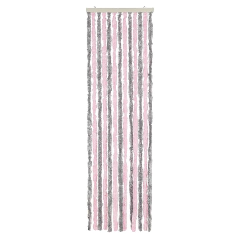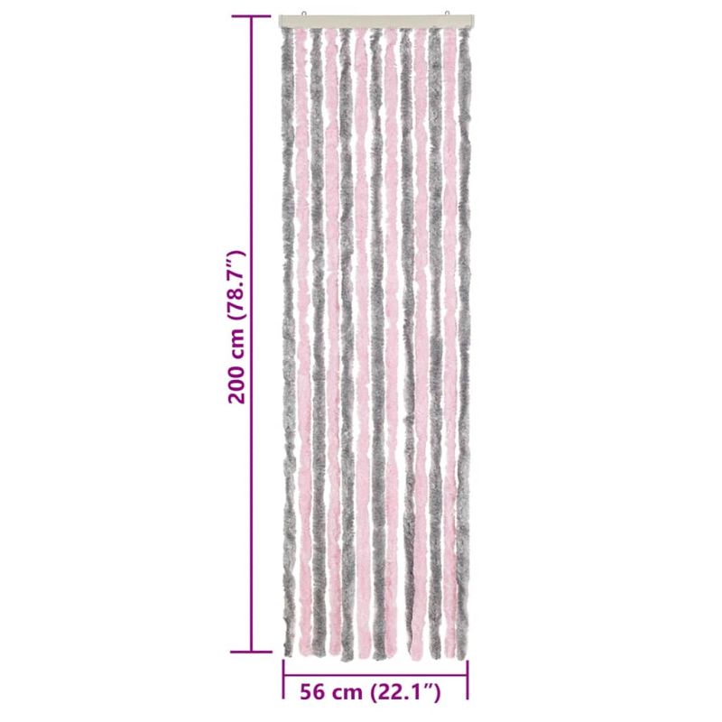 Ресни за врата против мухи, сиво и розово, 56x200 см, шенил
