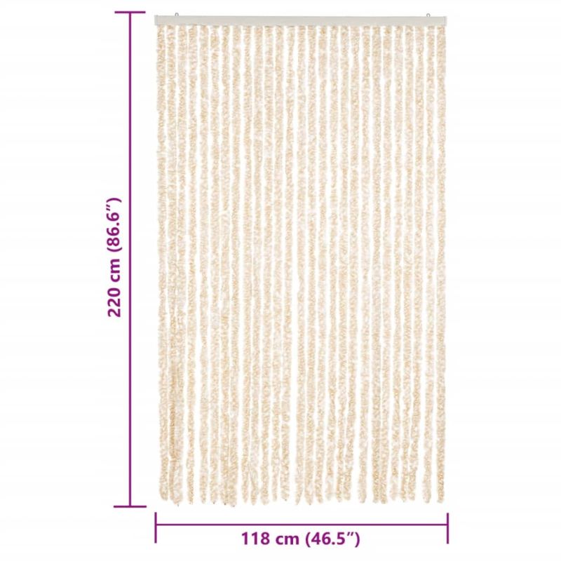 Ресни за врата против мухи, бежово и бяло, 118x220 см, шенил