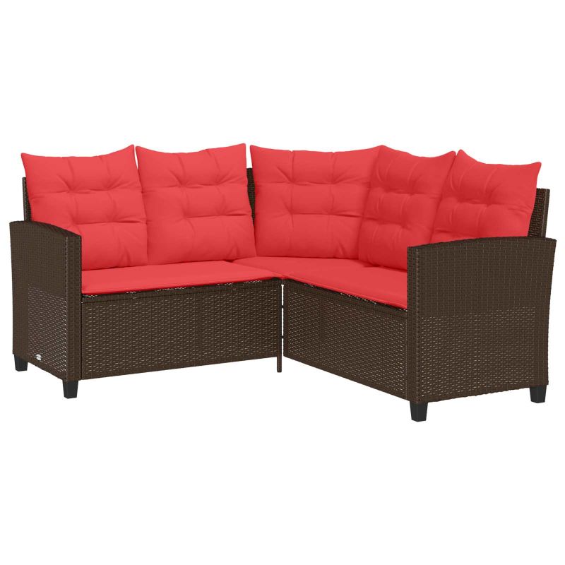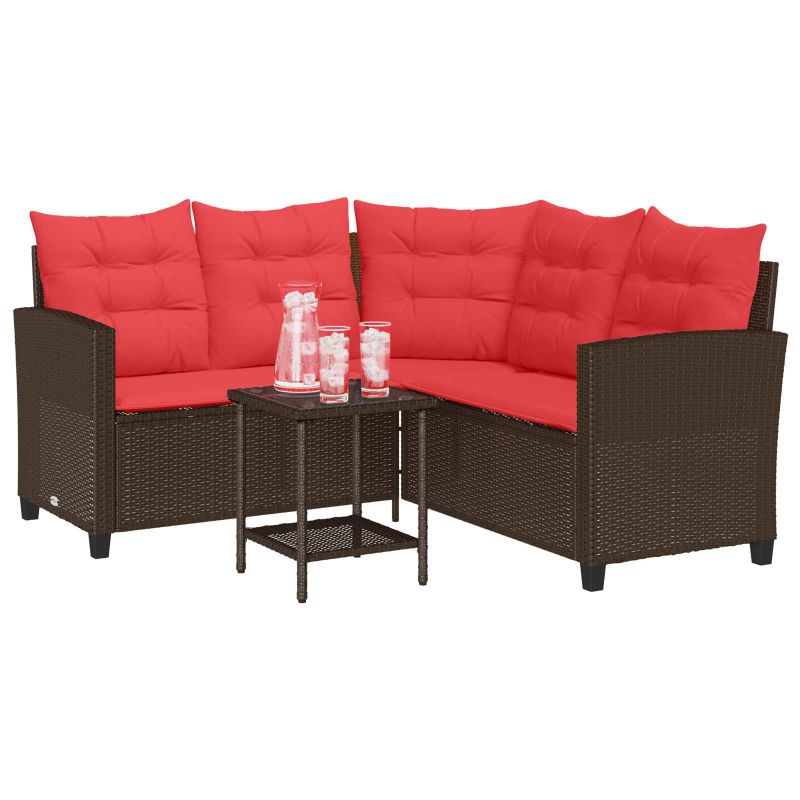 Комплект дивани за открито 2 pcs Кафяво и червено полиратан