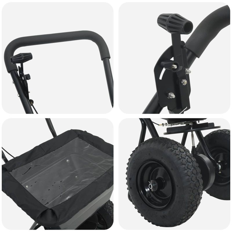 Този разпръсквач е за хора, които искат да се грижат за градината си, независимо дали са собственици или хобисти градинари. Изработен е от здрава PVC и стомана. Модерният му дизайн носи индустриални нотки, но е много практичен за използване навън. Можеш да го ползваш в различни градини, а стилното черно покритие го прави и красив. Устойчиви материали: Този разпръсквач е направен от PVC и стомана, така че да издържа на външни условия, без да се надраска или повреди. Включени компоненти: С разпръсквача получаваш добри части, проектирани за лесно разпределение на важни градински продукти. Функционален дизайн: Разпръсквачът е здрав и стилен, идеален за работа навън. Широка употреба: Проектиран е за нови наторявания и семена в различни градински пространства. Лесна поддръжка: Поддържането е лесно, просто го избърси след употреба. Сглобявайки го, просто ще ти трябват основни инструменти и помощ.