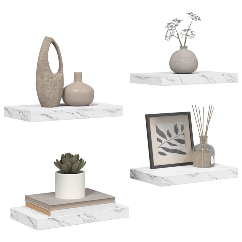 Стенен рафт 4 pcs Бял мрамор 40 x 23,5 x 4 см Инженерно дърво
