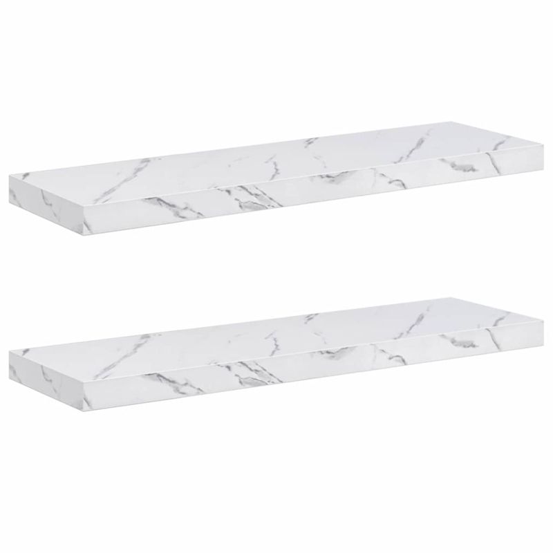 Стенен рафт 2 pcs Бял мрамор 80 x 23,5 x 4 см Инженерно дърво