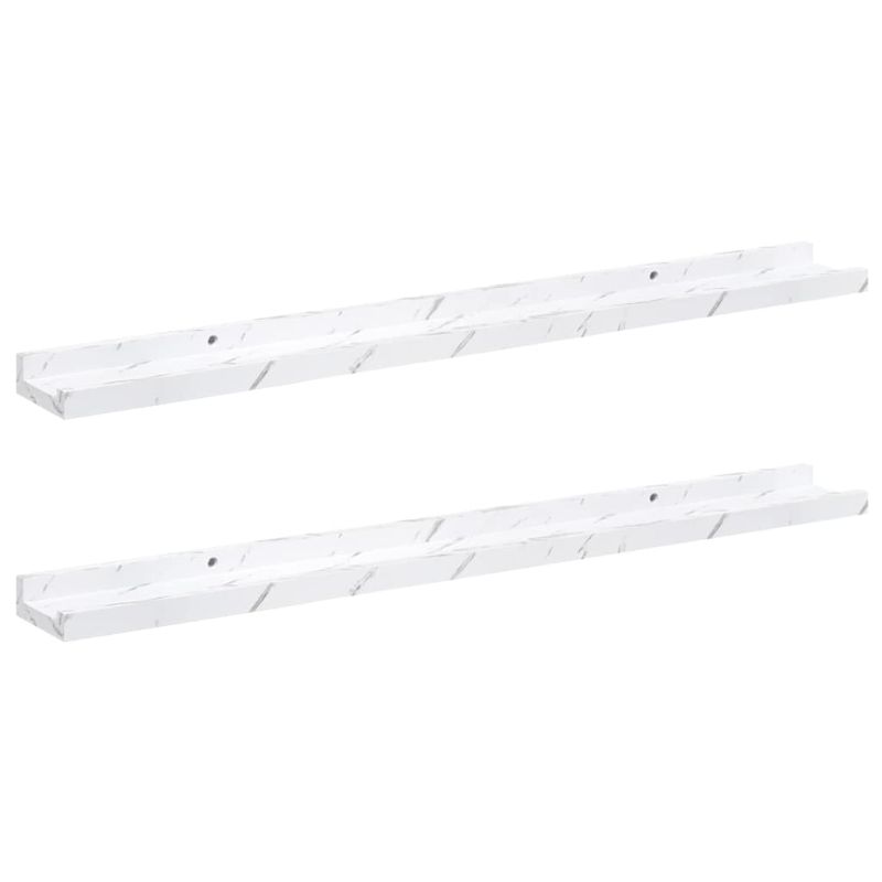 Стенен рафт 2 pcs Бял мрамор 80 x 9 x 3 cm Инженерно дърво