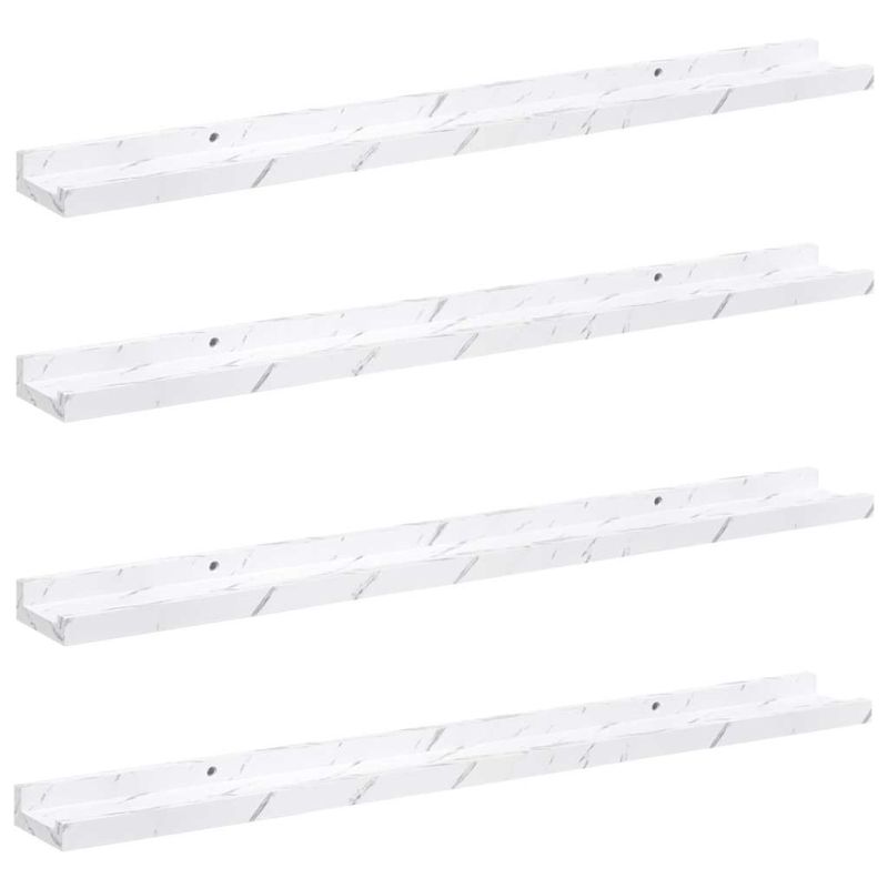 Стенен рафт 4 pcs Бял мрамор 80 x 9 x 3 cm Инженерно дърво