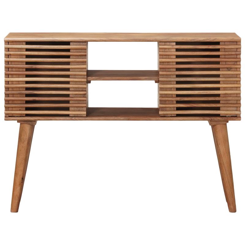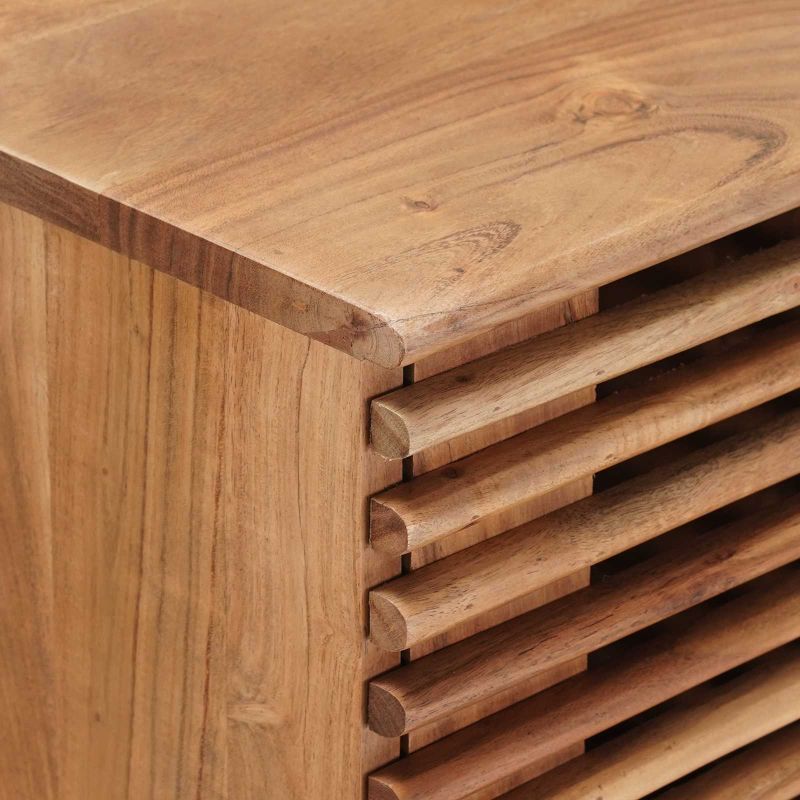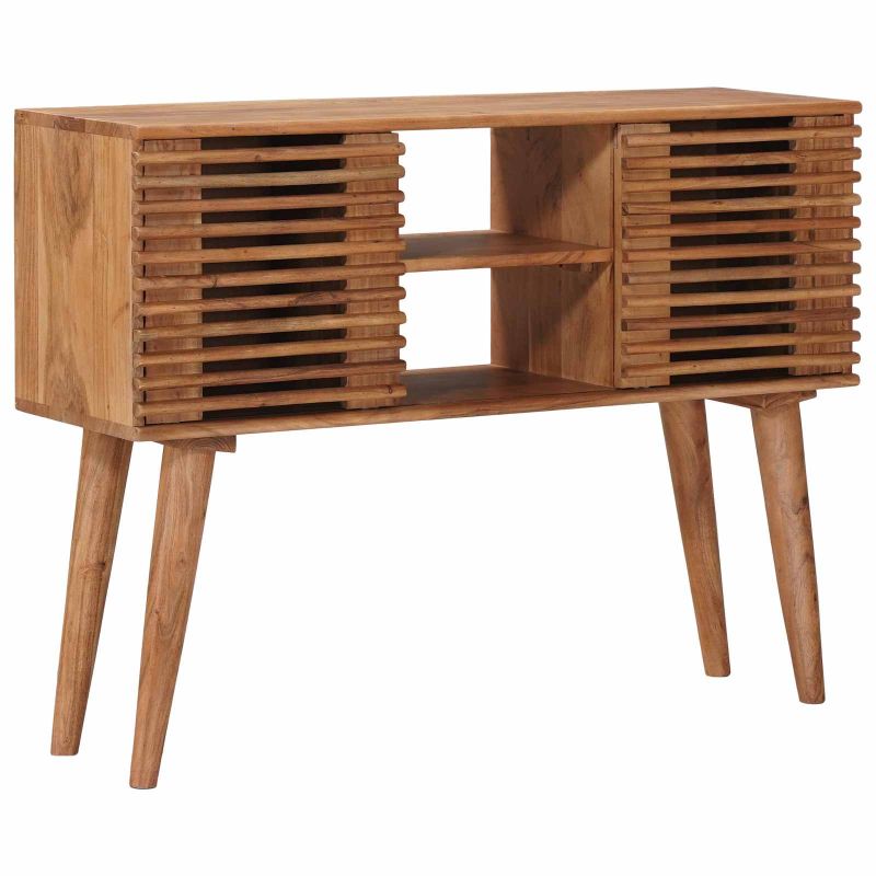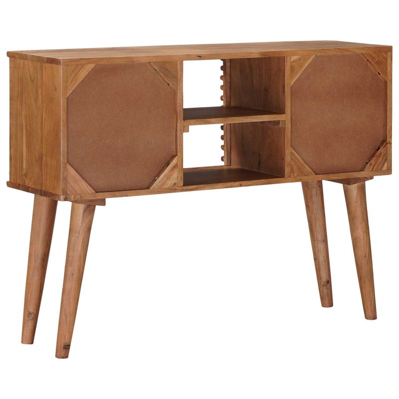 Тази странична маса е пример за вечен дизайн и съвременна функционалност, изработена е от топла и устойчива масивна акациева дървесина. Правоъгълната форма комбинира простота и елегантност, правейки я идеално допълнение към всяка всекидневна. Нейният изчистен дизайн смело допълва помещението, предлагайки стил и практично използване. Перфектна е за тези, които ценят мебели, съчетаващи стил и полезност – не само е красиво допълнение, но и важна част от декора в дома ви. Материали: Масивна акациева дървесина и инженерна дървесина - тази странична маса е проектирана за дълготрайност и стил. Материалите осигуряват здрава основа, но също добавят топлина и уют, предавайки елегантно усещане. Включени компоненти: С плъзгаща се врата, страничната маса осигурява лесен достъп до вътрешното пространство, а добавя и модерен вид. Вратата работи гладко, което спестява място – идеално за съвременни всекидневни, където стила и практичността са важни. Функционален дизайн: Правоъгълната форма на тази странична маса представлява съвременния стил с чисти линии и минималистичен вид, което я прави универсално решение за всякакъв интериор. Уникалният ѝ дизайн я прави ценен акцент за всеки дом. Препоръчителни употреби: Идеална е за ползване вътре, направена е специално за всекидневната. Може да я използвате за показване на любимите си декорации или като практично място за ежедневните вещи. Поддръжка и грижа: За да запазите оригиналния вид, чистете с суха кърпа и избягвайте агресивни материали. Грижете се за тази маса, за да остане важен елемент за години наред.