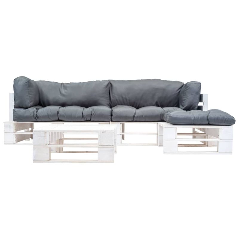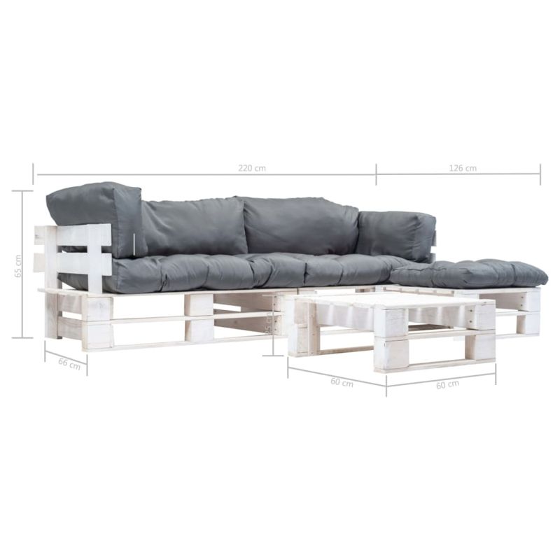 Градински мебели от палети, 4 части, сиви възглавници, дърво
