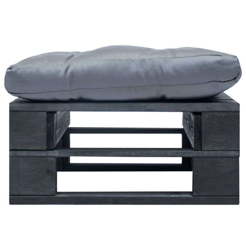 Начало Дом и градина Мебели Външни мебели Градински кушетки Градинска палетна табуретка със сива възглавница, дърво черно