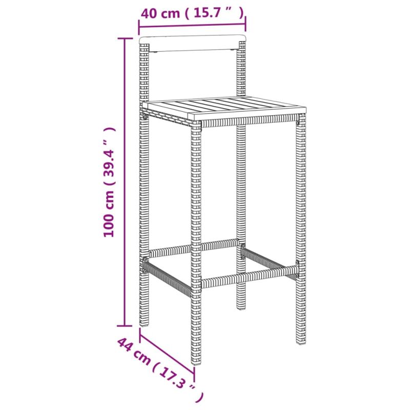 Този модерен градински бар комплект, съчетаващ както стил, така и функционалност, със сигурност е предназначен да бъде центърът на вашата градина, вътрешен двор и всяко друго жилищно пространство. Материал, устойчив на атмосферни влияния: PE ратан, известен също като полиратан, е устойчив на атмосферни влияния и лесен за почистване. Той остава красив отвън за дълъг период от време. Предлага отлично качество, удобство и естетичен вид.Удобство при седене: Бар столът е проектиран с вградена поставка за крака, за да ви предложи удобно изживяване при сядане. Дървената седалка и облегалка също така придават на стола естествен и приятен вид, като същевременно осигуряват стабилност.Дървен плот: Дървеният плот с летвен дизайн е идеален за поставяне на напитки, храна и т.н.Здрава и стабилна рамка: Прахово боядисаните стоманени рамки правят пъб комплекта здрав и стабилен за ежедневна употреба на открито.Широки приложения: Бар масата със столове със своя забележителен дизайн създава приятна цялостна визия, която се интегрира без усилие във всяка среда. Добре е да се знае:За да бъде сглобяването възможно най-лесно, всеки продукт се доставя с ръководство. Забележка:За да сте сигурни, че вашите външни мебели ще останат красиви, ви препоръчваме да ги защитите с водоустойчиво покривало. Максимално 110 кг на седалка.