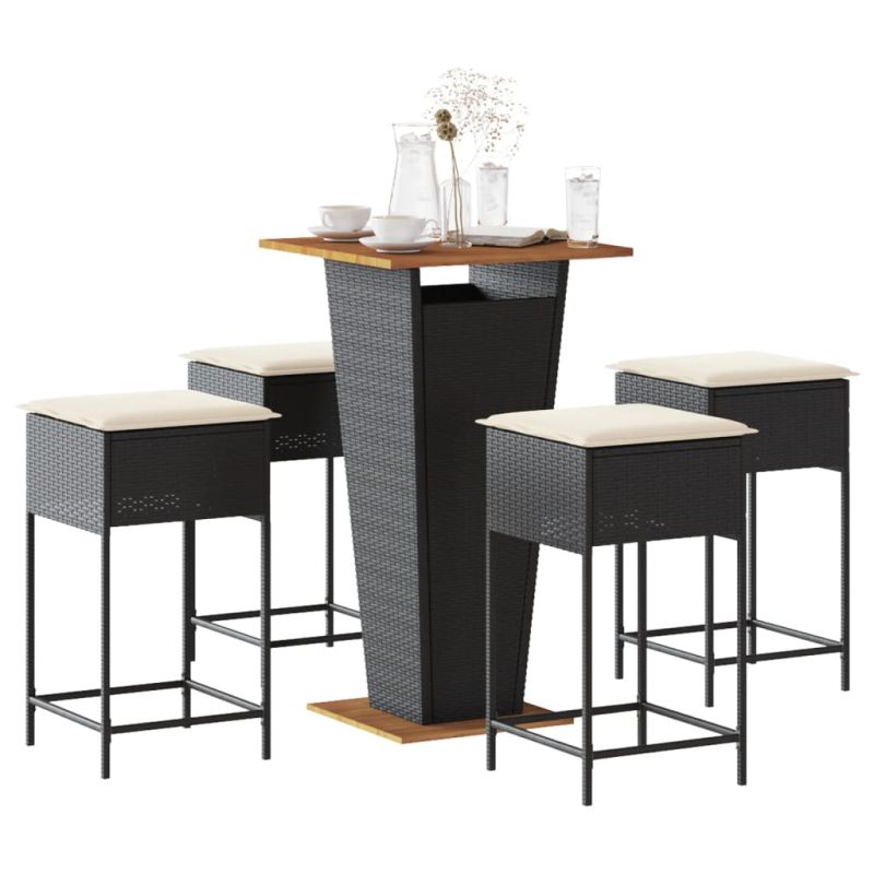 Начало Дом и градина Мебели Външни мебели Комплекти градински мебели Градински бар комплект с възглавници 5 части черен полиратан
