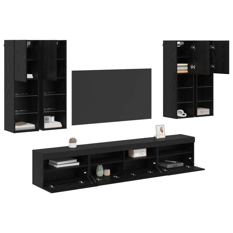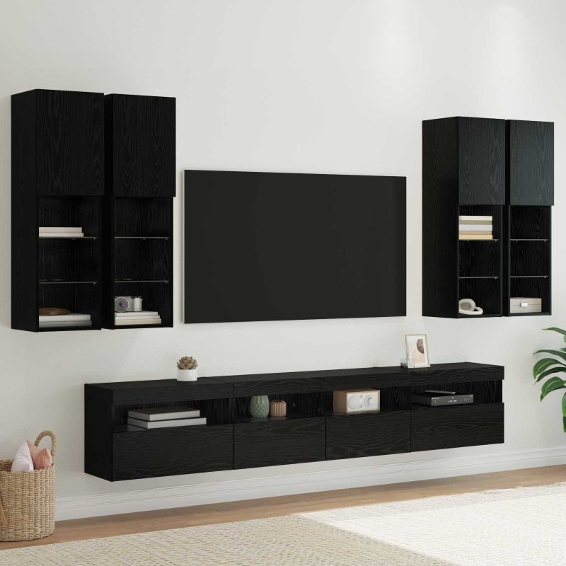 Комплект стенен телевизионен шкаф с LED светлини с LED 7 pcs