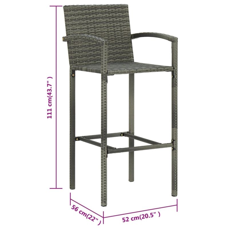 Тези бар табуретки с модерен дизайн са предназначени да бъдат практично допълнение към вашето външно и вътрешно жилищно пространство. Материал, устойчив на атмосферни влияния: PE ратан, известен също като полиратан, е устойчив на атмосферни влияния и лесен за почистване. Той остава красив отвън за дълъг период от време. Предлага отлично качество, удобство и естетичен вид.Здрава рамка: Прахово боядисаните стоманени рамки правят бар табуретката за закуска здрава и стабилна за ежедневна употреба на открито.Удобство при седене: Кухненската бар табуретка е проектирана с подлакътници и вградена поставка за крака, за да ви предложи удобно изживяване при сядане.Лесно преместване: Благодарение на леката конструкция, бар столът може лесно да се премести, за да отговаря на други подредби. Добре е да се знае:За да бъде сглобяването възможно най-лесно, всеки продукт се доставя с ръководство.