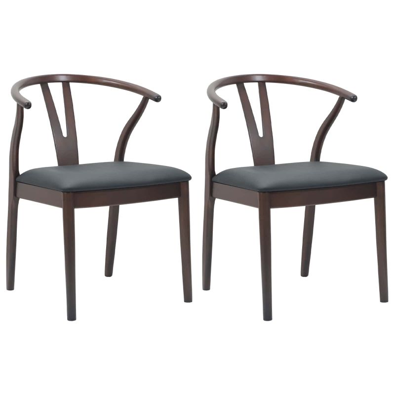 Трапезен стол 2 pcs Светло кафяво и черно Солидно гумено дърво