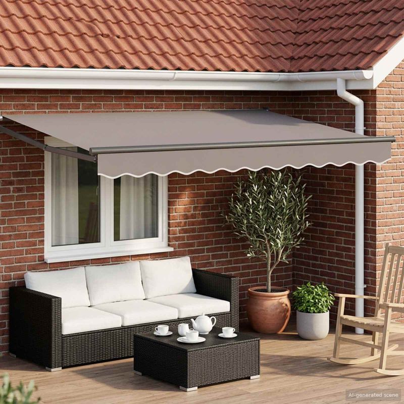 Този сгъваем сенник е идеалното решение за връзка между елегантност и практичност, ако търсите нещо за сянка на открито. Подходящ за тераси или градини, той е стилен и визуално привлекателен, като същевременно пази от силната слънчева светлина, без да затворя пространството. Съвременният му минималистичен дизайн пасва на различни външни обстановки и го прави идеален за домове и търговски площи. Алуминиева рамка: Рамката е изработена от алуминий, което осигурява издръжливост и лекота, без да добавя излишно тегло. Това я прави идеален избор за всякакви метеорологични условия, без комплицирано поддържане. Сгъваема функционалност: Сгъваемият механизъм улеснява потребителите да настроят количеството сянка, която искат. Това е особено полезно по време на различни метеорологични условия, повишавайки комфорта. Корозионно-устойчиви функции: Издръжливият алуминий осигурява защита от корозия, така че можете да бъдете спокойни дори в дъждовно време. Няма да ръждясва и остава надежден за дългосрочна употреба на открито. Модерен дизайн: Със своите чисти линии, този сенник е истински стилен и идеално допълва модерните екстериори. Формата му увеличава привлекателността на откритите пространства и се съчетава перфектно със съвременния стил на много домове. Изискване за сглобяване: Нуждае се от малко сглобяване; с отвертка и един човек, това е лесно и бързо. Позволява бързо настройване, за да можете бързо да се насладите на предимствата на сенника.