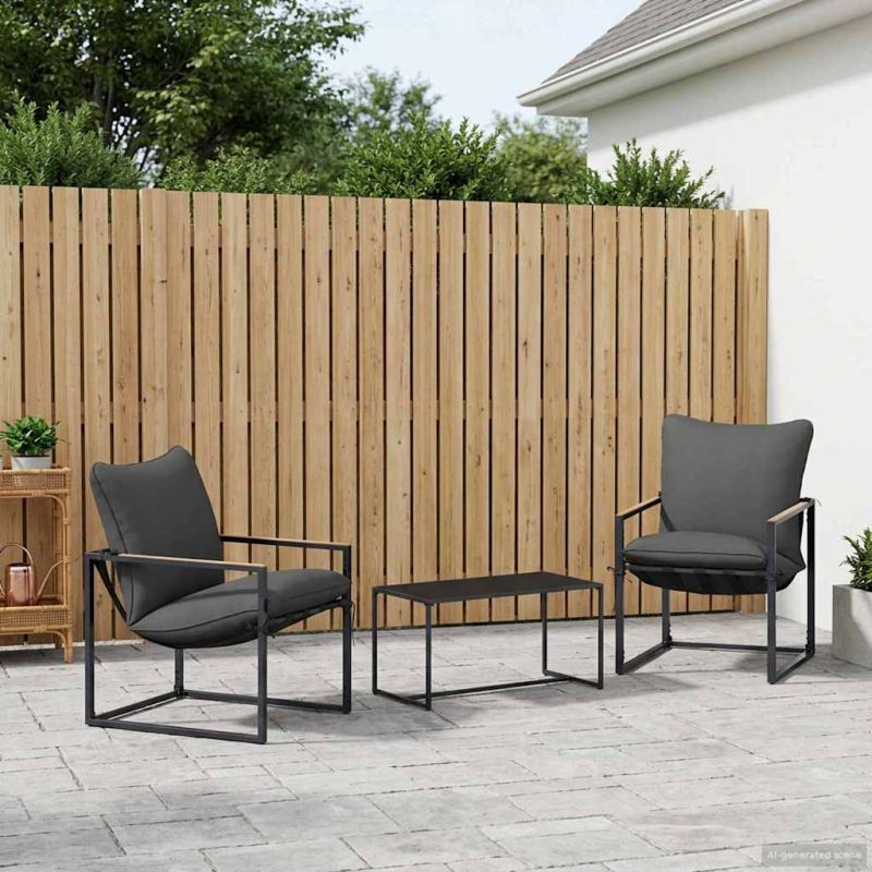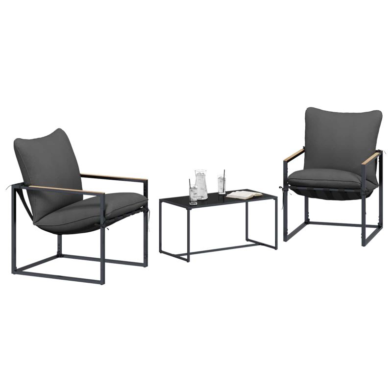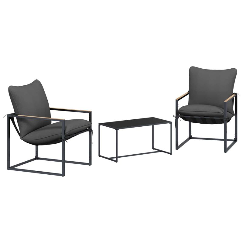 Градински Софа Комплект 3 pcs Черно и антрацит Стомана