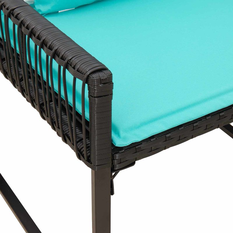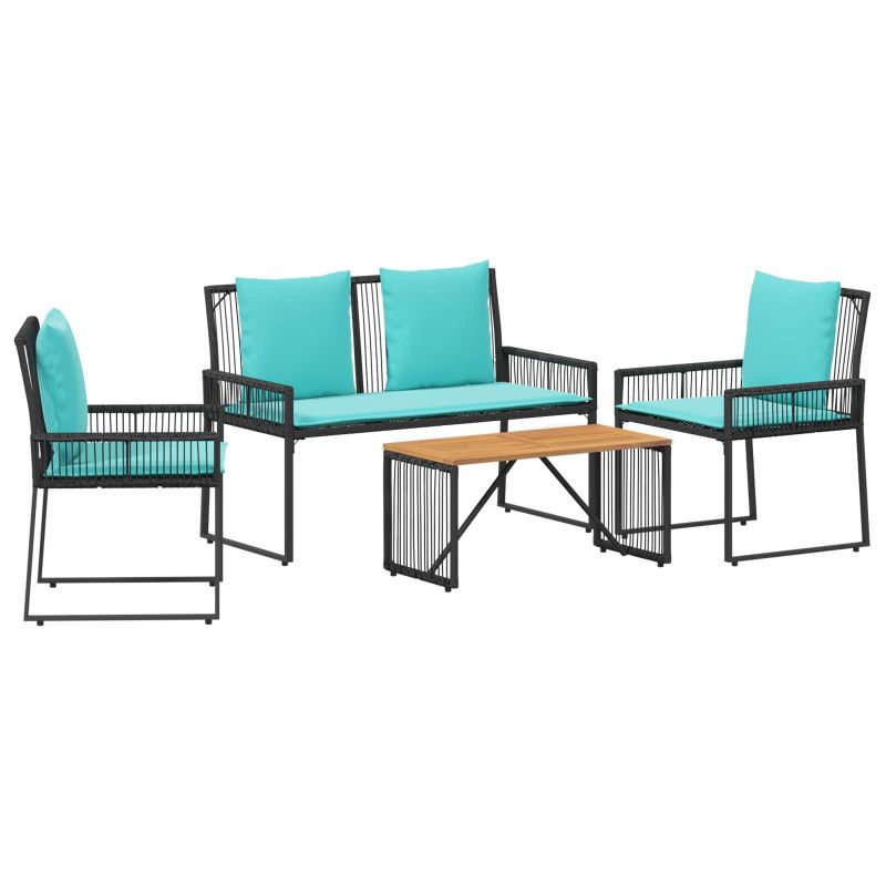 Комплект за външни мебели 9 pcs Черен и Туркоаз полиратан