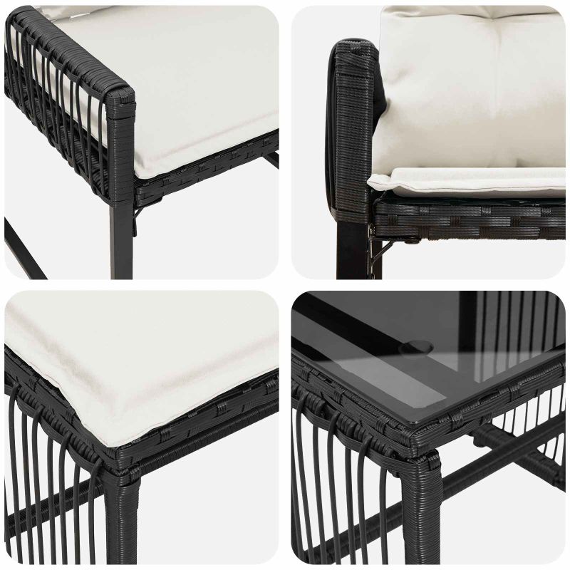 Комплект за външни мебели 11 pcs Черно и кремаво бяло полиратан