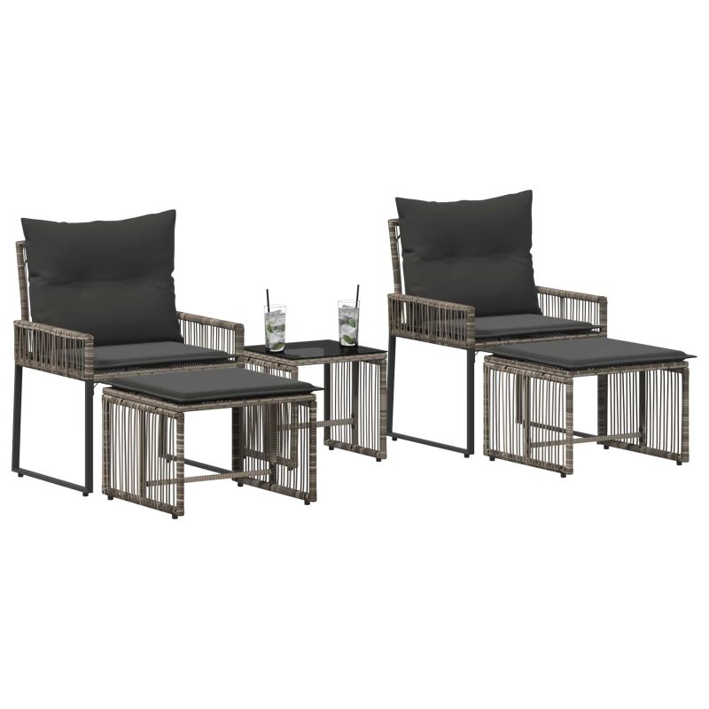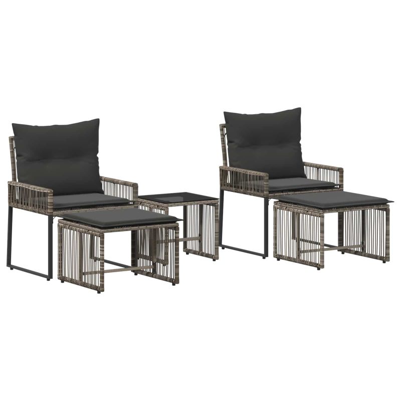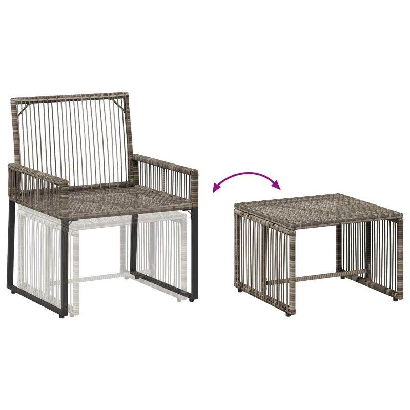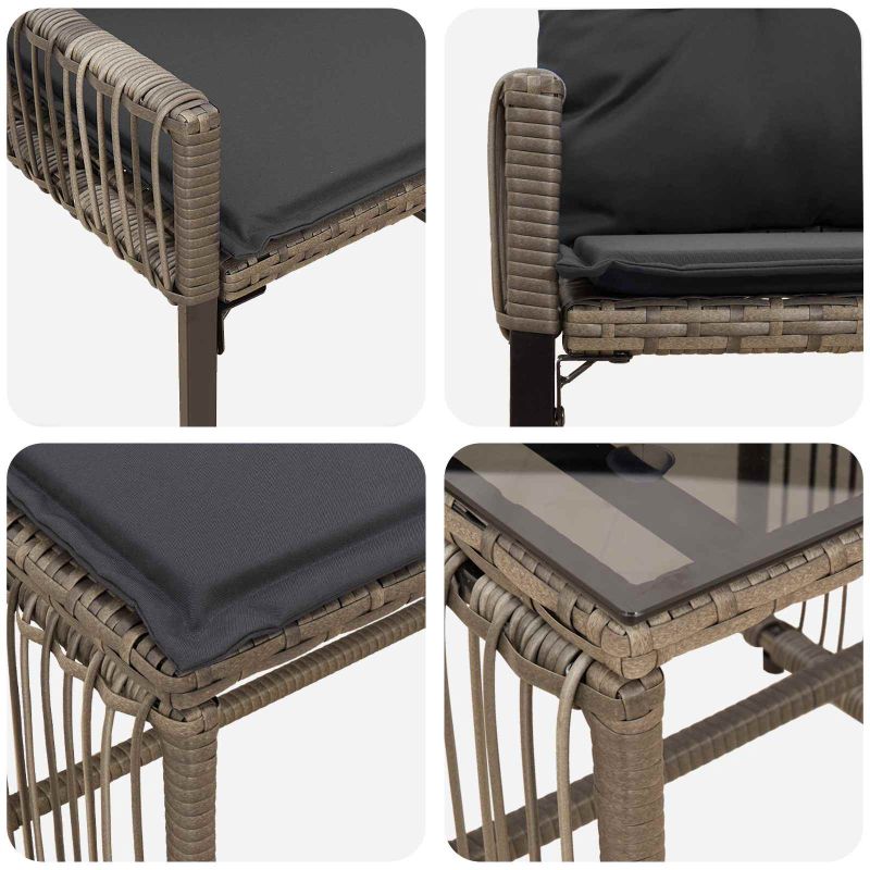 Създали сме този комплект мебели от полиратан, за да осигури комфорт и практичност на открито. Той съчетава стилни плетени текстури и уютни възглавници, комбинирани с здрава стоманена основа. Чудесна комбинация от материали, която придава отпуснат, но в същото време елегантен вид, идеален за всяко открито пространство. Подходящ е както за неформални срещи, така и за всекидневна употреба. Издръжлива конструкция: Този комплект мебели за открито е направен от плътен PE ратан, който осигурява надеждност дори при работа на открито. Структурата е подсилена от стоманена рамка с прахово покритие, което гарантира дълготрайност и устойчивост на атмосферни влияния. Тези материали осигуряват здрава, но стилна визия. Допълнителен комфорт: Проектиран за истински комфорт, комплектът има сваляеми възглавници, които предлагат удобно сядане за дълги часове. Плетената PE ратанова повърхност осигурява добра вентилация и удобно усещане без ненужно омекотяване. Регулируеми нивелири: Интегрираните нивелири в основата позволяват прецизно настройване на височината и баланса. Това е полезно, когато се използва на неравен терен и осигурява стабилност и комфорт. Многофункционалност: Подходящ за градини, тераси и всякакви открити пространства, комплектът предлага удобно място за сядане за всички поводи. Лесно може да бъде прибран под пейката, когато не се използва, поддържайки простота и подреден вид на откритото.