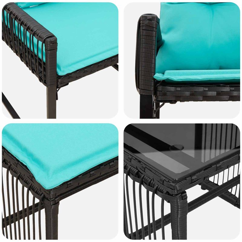 Комплект за външни мебели 11 pcs Черен и Туркоаз полиратан