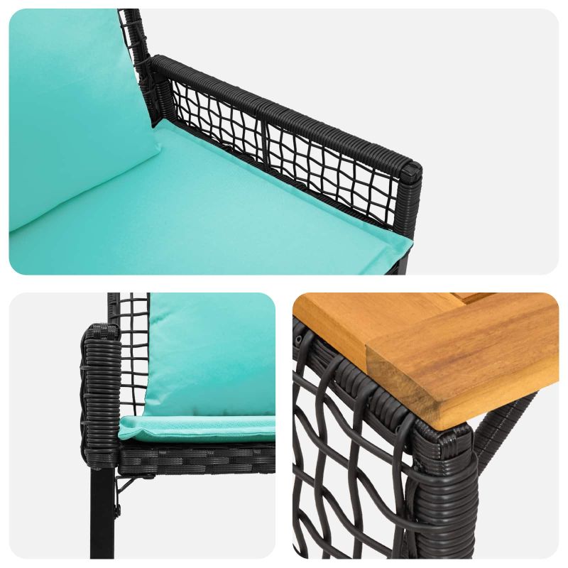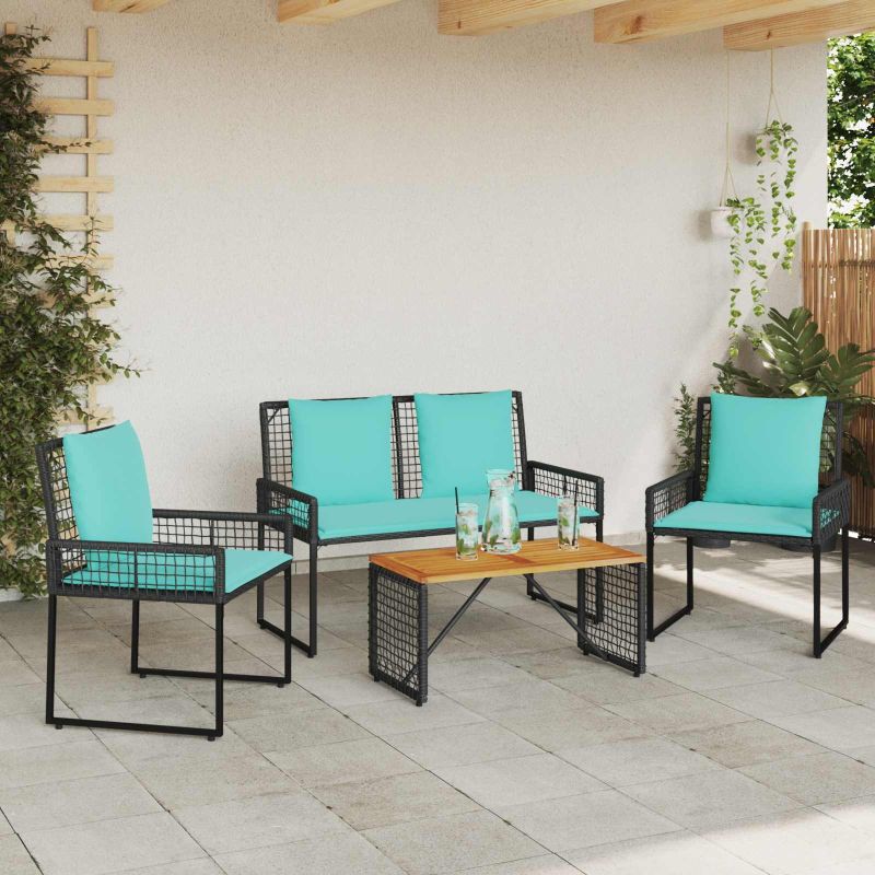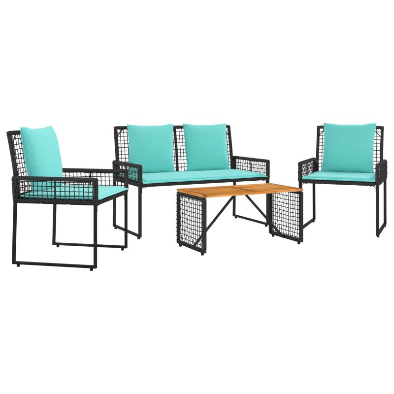 Комплект за външни мебели с възглавница 4 pcs Черен и Туркоаз