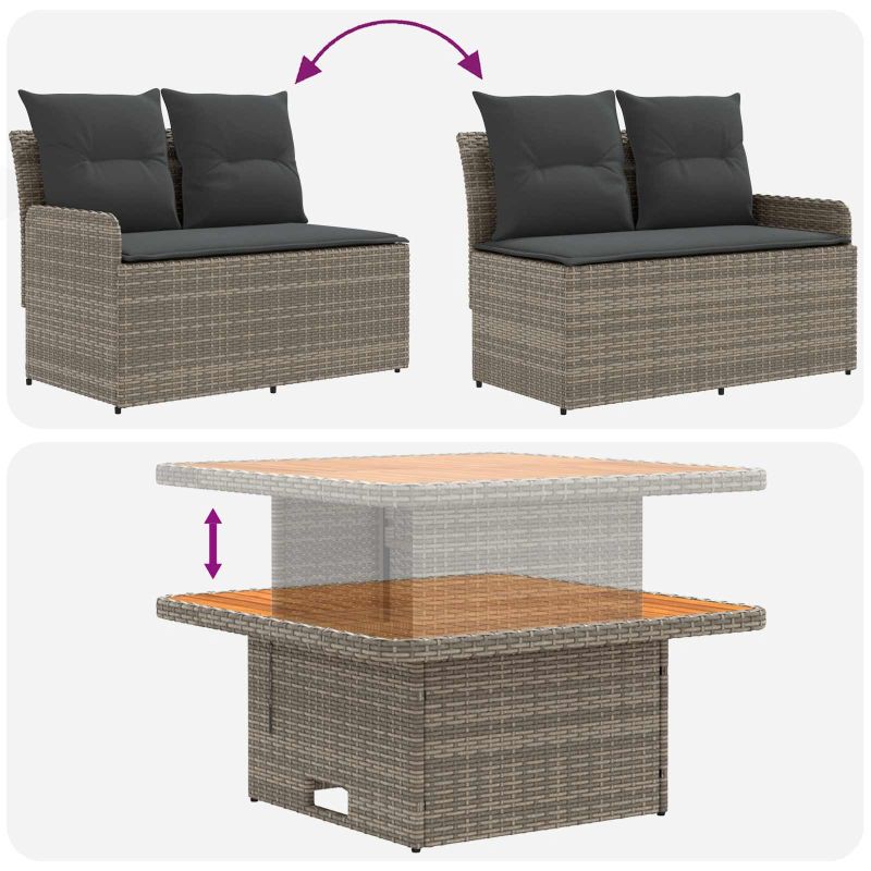 Този модерен градински диван с подлакътници и Liftup маса е истински пример за стил и практичност, предлагаща гъвкаво решение за сидене навсякъде. С чисти, минималистични линии, той се вписва лесно в всяко актуално пространство, придавайки усещане за комфорт. Идеален за всеки, който държи на крайния комфорт, този диван е прекрасно допълнение за собственици, които искат да подобрят обстановката си. Представете си уютни места за събиране, обогатени от този страхотен и функционален елемент. Качество на материала: С надеждна конструкция от поли ратан, този диван издържа на времето, осигурявайки устойчива защита от елементите. С прахово боядисана стомана и solid акациева дървесина, той съчетава привлекателен вид с здравина. Издръжливият дизайн го прави перфектен за вътрешно и външно ползване, осигурявайки страхотно представяне целогодишно. Персонализиран комфорт: Диванът идва с изваждаща се възглавница с удобен цип, което улеснява поддръжката. Пяната и полиестерното влакно дават супер комфорт, прилягайки на тялото ти и предлагащи приятно усещане при дълги разговори или спокоен отдих. Динамично използване: Lift-up масата е регулируема и перфектна за всякакви поводи - дали посрещаш гости, или работиш от вкъщи. Лесно променяй височината, за да отговориш на различни нужди. Дизайн с цел: Идеален за всичките сезони, този универсален диван е подходящ за градини, патии, всекидневни или зимни градини. Формата и стилът му се вписват без усилие във всяка обстановка, готов да подкрепя всичко - от неформални събирания до тихо време за отдих. Лесно поддържане: Защитете дивана от лошо време с водонепромокаем калъф. Лесно почиствайте повърхностите и периодично се грижете за дървото, за да изглежда мебелите ви в отлична форма през годините.