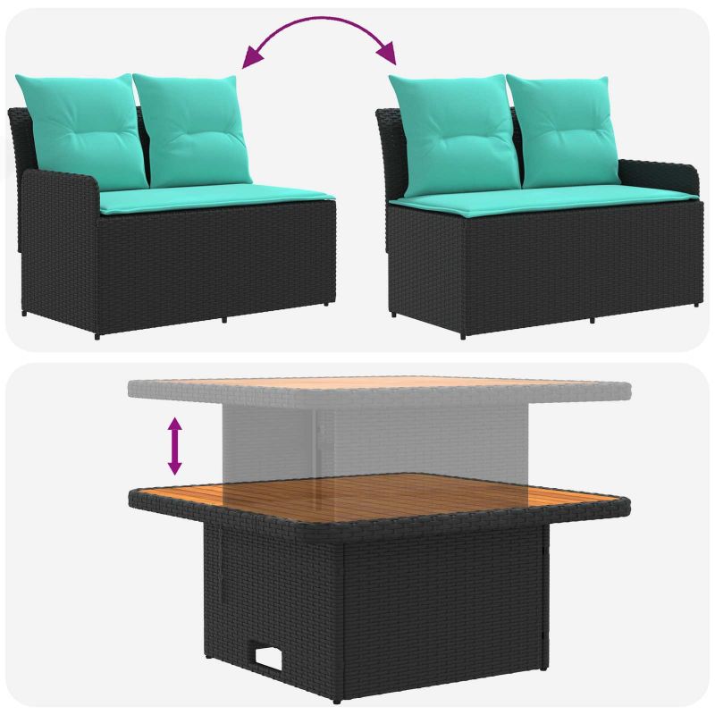 Диван с подлакътници за градина с подвижна маса 2 Брой ПЕ ратан