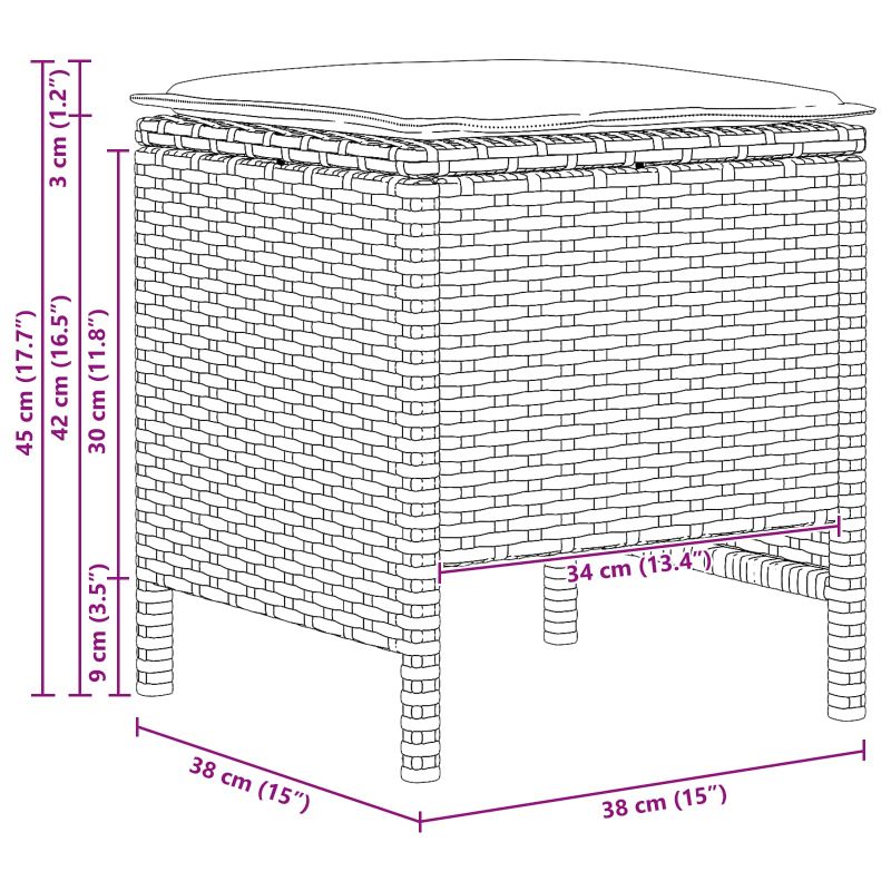 Табуретка за градина 2 Брой Черно 38 x 38 x 45 cm ПЕ ратан