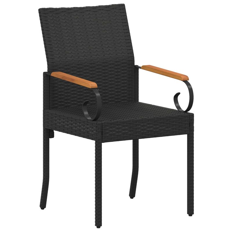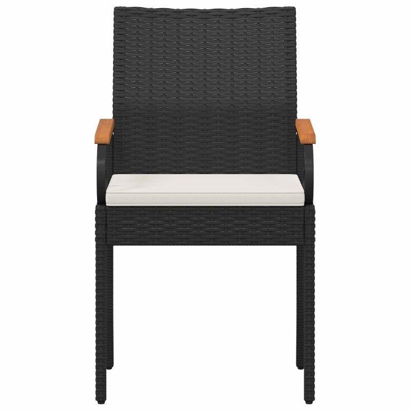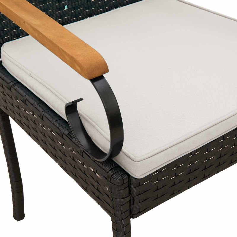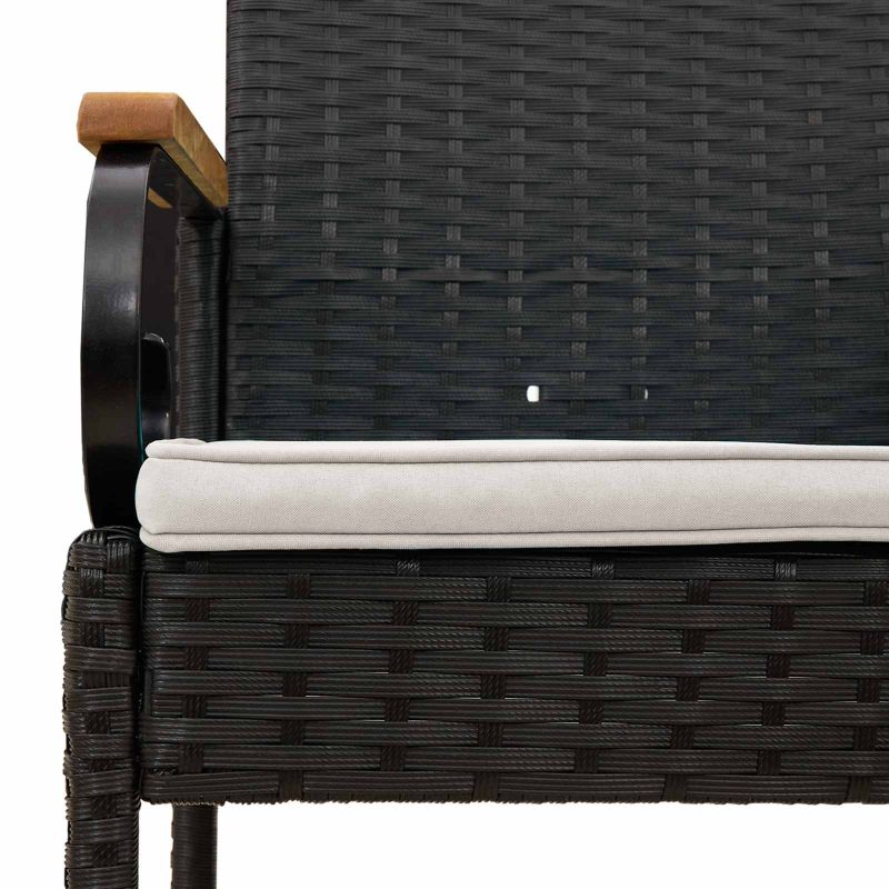Градински столове 2 pcs Черно и кремаво бяло Полиратан и акация